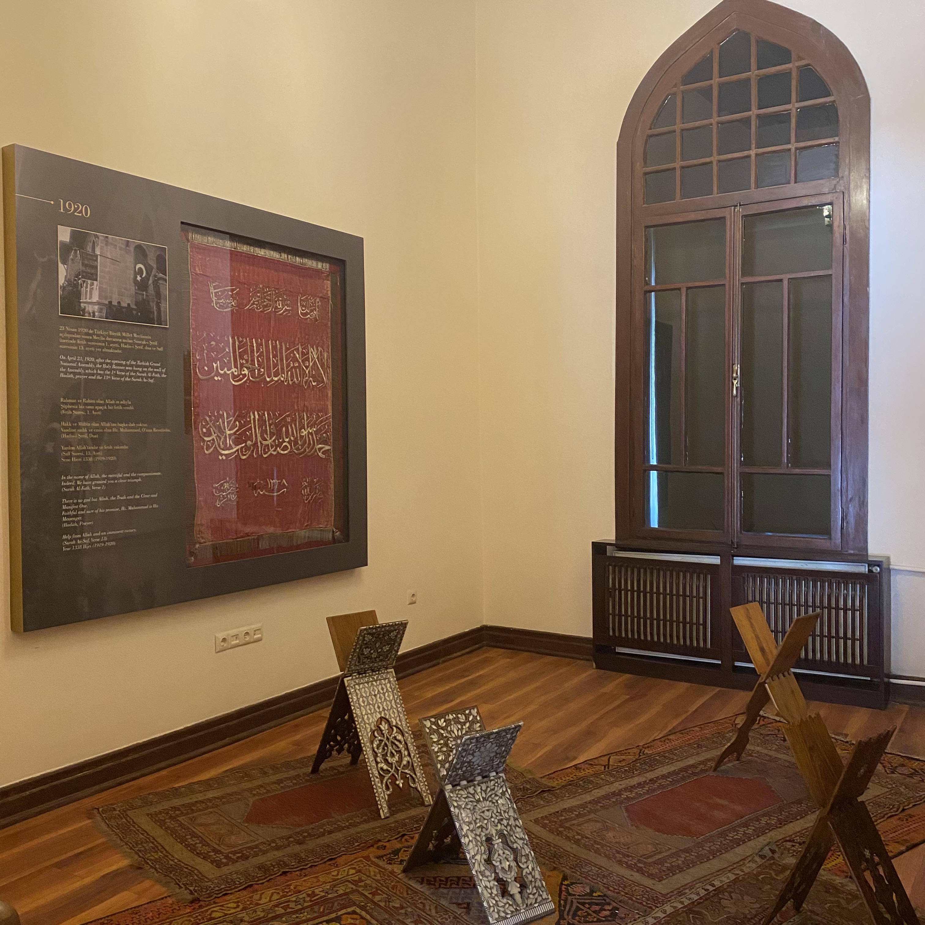 Döneminde mescit olarak kullanılan ve sade bir görünümü olan bu odada, halı seccadeler ve rahleler sergilenmektedir. Rahlelerin ikisi Şam işi tekniğinde sedef kakmalı, diğer ikisi ise oldukça sadedir. Odanın bir duvarında sancak asılı durmaktadır. Türkiye Büyük Millet Meclisinin açılışından sonra duvara asılan sancak üzerinde sim ile Fetih suresinin birinci ayeti, bir Hadis-i Şerif ve Saff suresinin on üçüncü ayeti işlenmiştir.