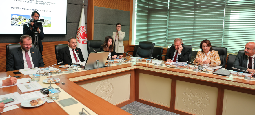 Komisyonda, Çevre, Şehircilik ve İklim Değişikliği Bakanlığı temsilcileri, Kahramanmaraş merkezli depreme ilişkin sunum yaptı.
