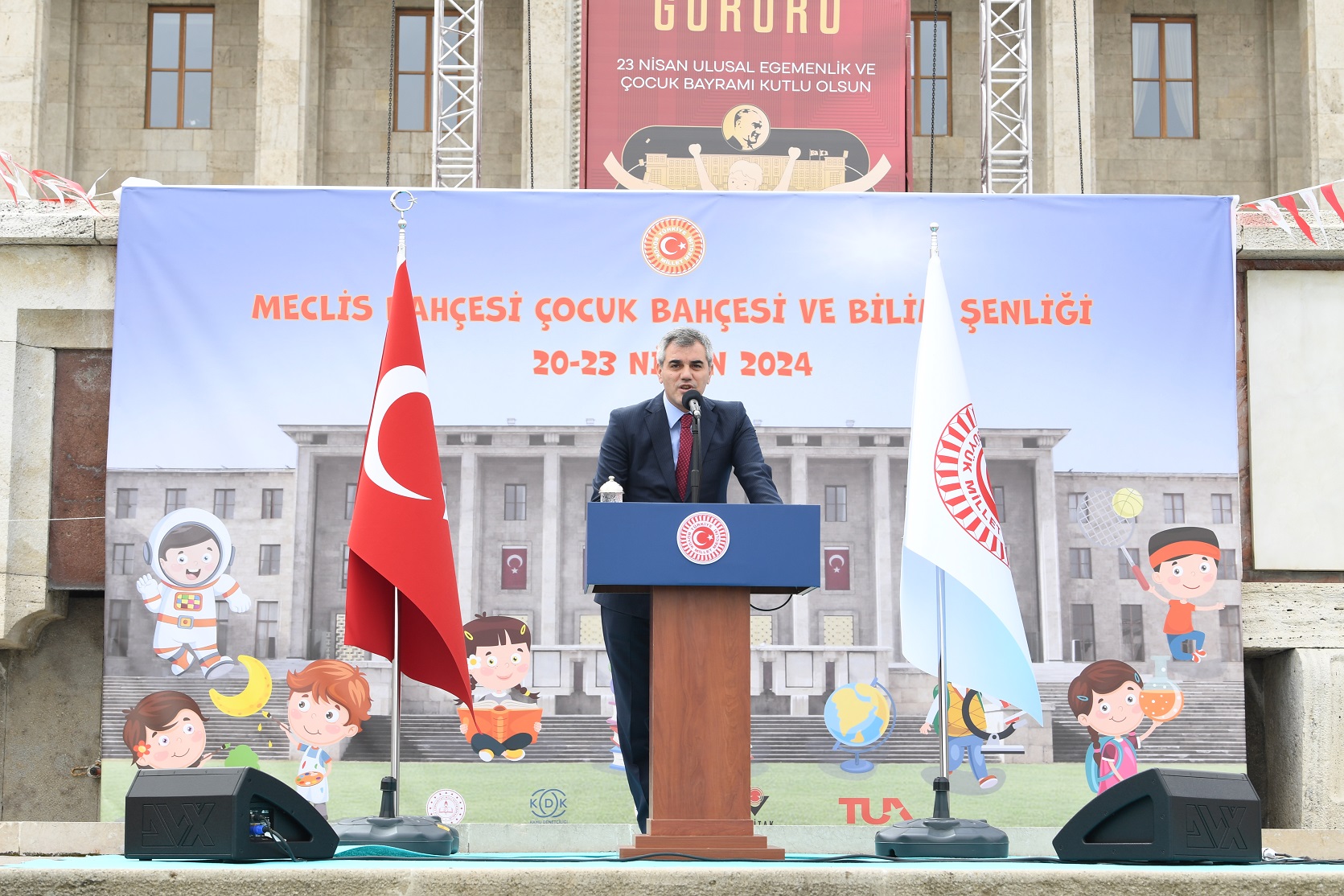 TBMM Genel Sekreteri Talip Uzun, Meclis bahçesinde düzenlenen etkinliğin açılışında yaptığı konuşmada, 104 yıl önce TBMM'yi açarak Meclis bahçesindeki kutlamaların yapılmasına vesile olan Mustafa Kemal Atatürk ve silah arkadaşları ile tüm şehitlere şükranlarını sundu.