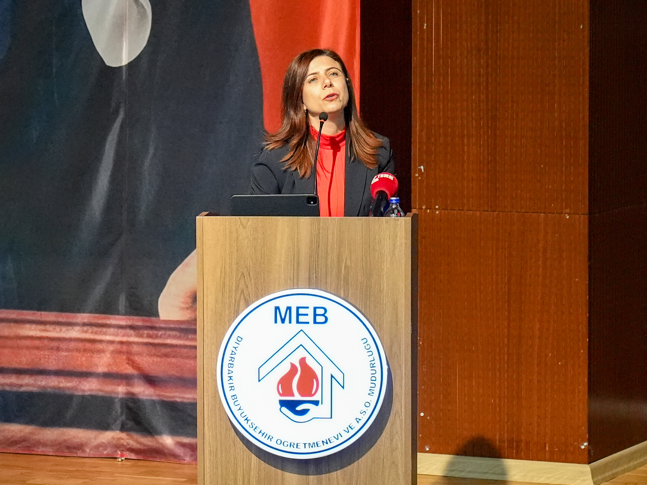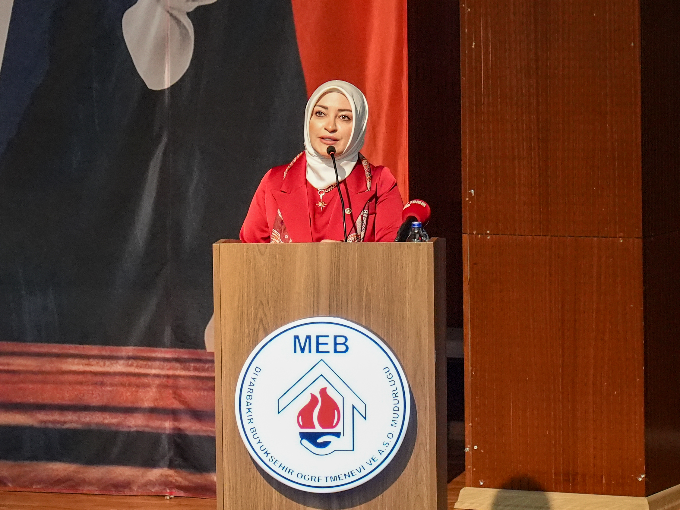 "Diyarbakır kadın emeğiyle yeniden şekillenen güçlü bir şehirdir. Büyükşehir belediye başkanı kadındır, 5 kadın milletvekili vardır. Diyarbakır'da aktif olarak çalışan sigortalı kadın sayısı 157 bindir. İŞKUR'a kayıtlı kadın iş gücü sayısı 90 bin 613'tür. 2025 yılında İŞ-KUR tarafından istihdam edilen kadın sayısı 6 bin 370'dir. Bu tablo bize gösteriyor ki kadınlarımız artık sadece evde değil iş yerinde, tarlada, fabrikada, ofiste üretimin kalbinde yer alıyor çünkü biz biliyoruz ki beşiği sallayan dünyayı sallar."