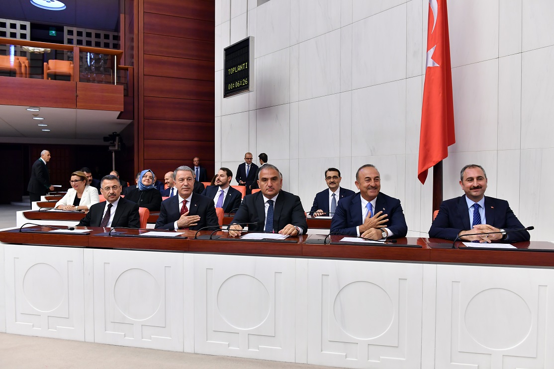 Yılmaz, başarılar dilediği Cumhurbaşkanı yardımcısı Oktay ve yeni bakanları Genel Kurula davet etti.