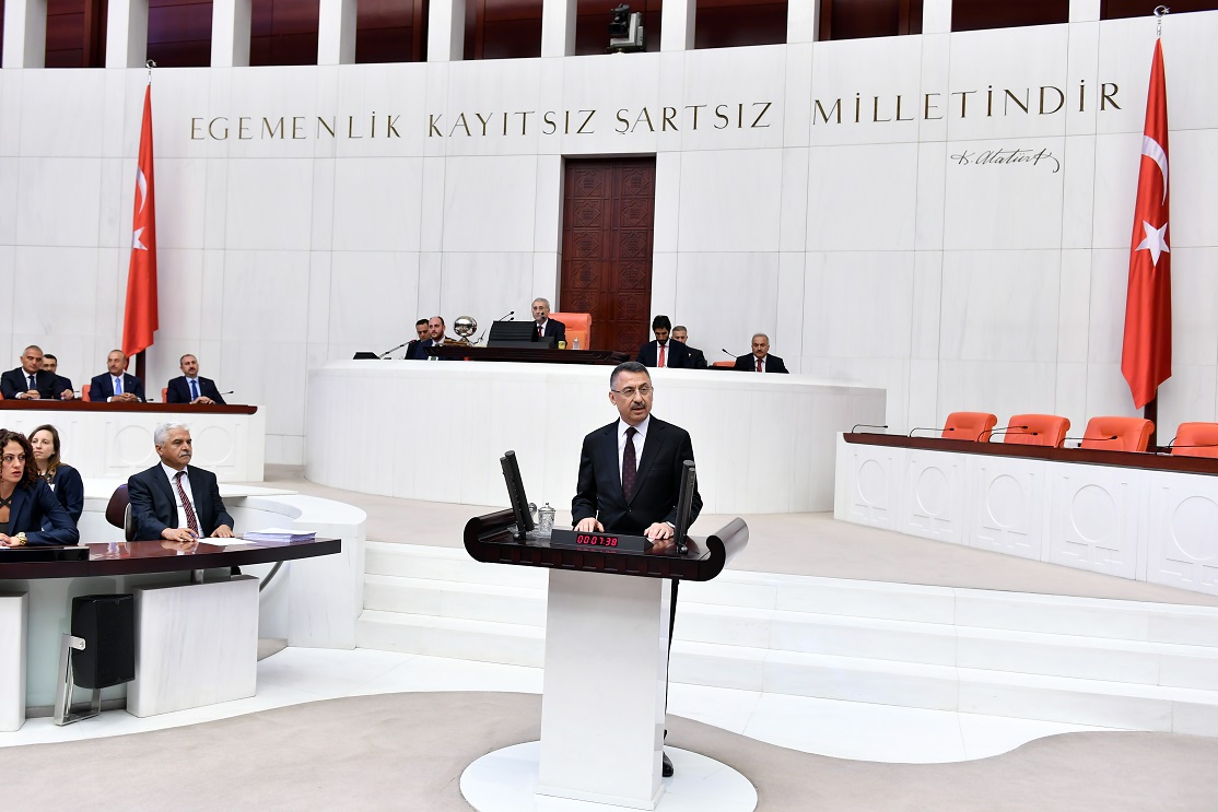 Cumhurbaşkanı Yardımcısı Fuat Oktay ve bakanlar Genel Kurula beraber gelerek, komisyon sıralarına oturdu.