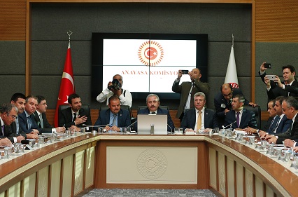 Anayasa Komisyonu, AK Parti İstanbul Milletvekili Mustafa Şentop başkanlığında önergeyi görüşmek için toplandı.