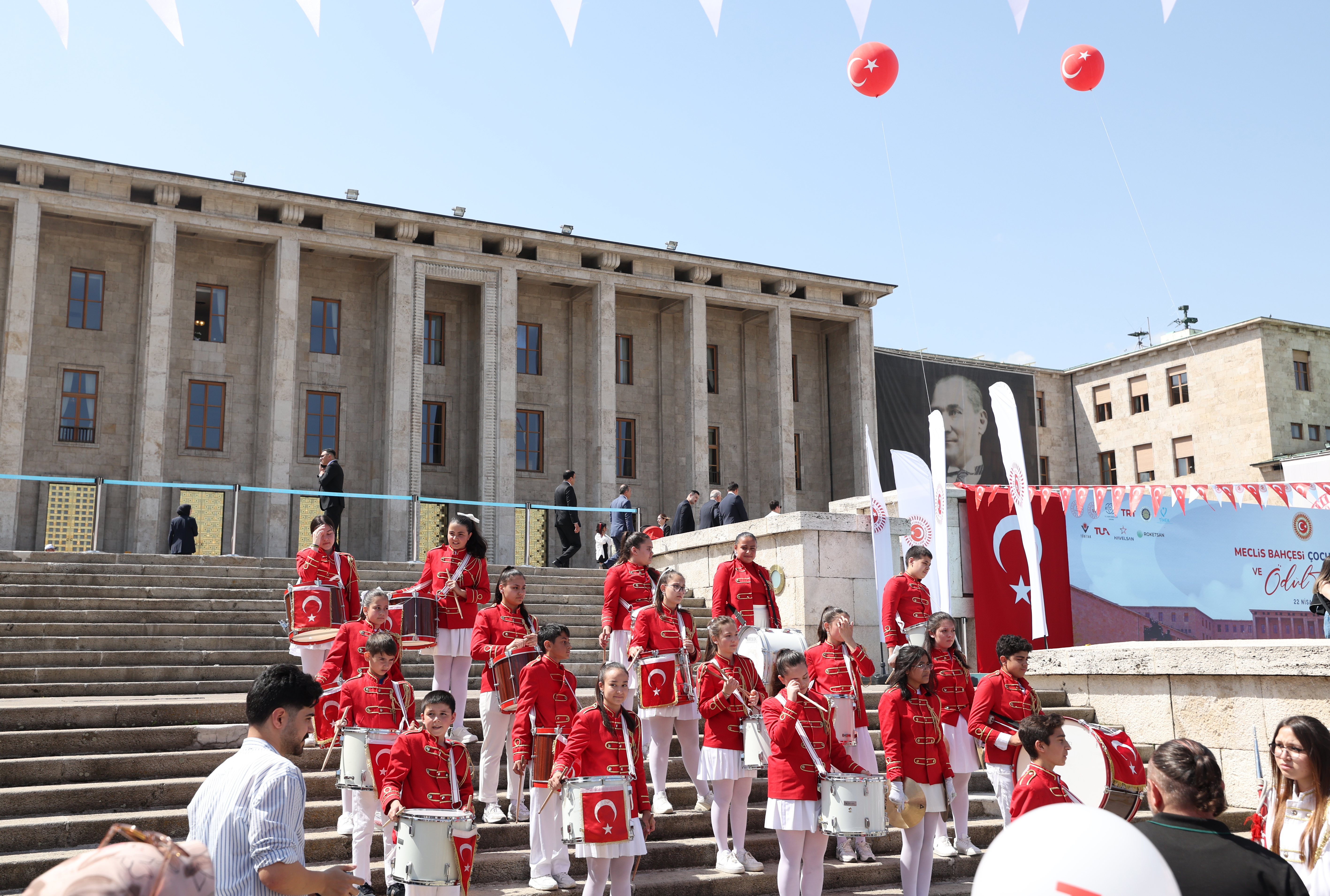 Türkiye’nin dört bir yanından gelen çocuklar, 23 Nisan coşkusunu bu yıl bir kez daha Meclis Bahçesi’nde yaşıyor.