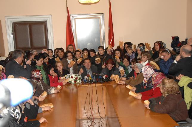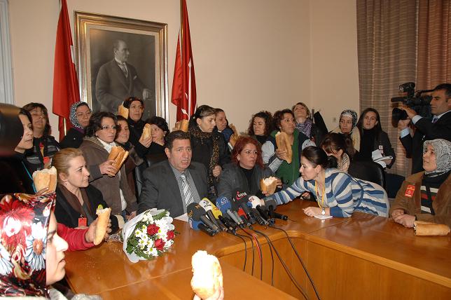 Ellerinde ekmeklerle Meclise gelen TEKEL işçisi 50 kadın, Ankara'ya
