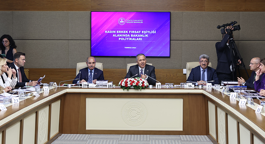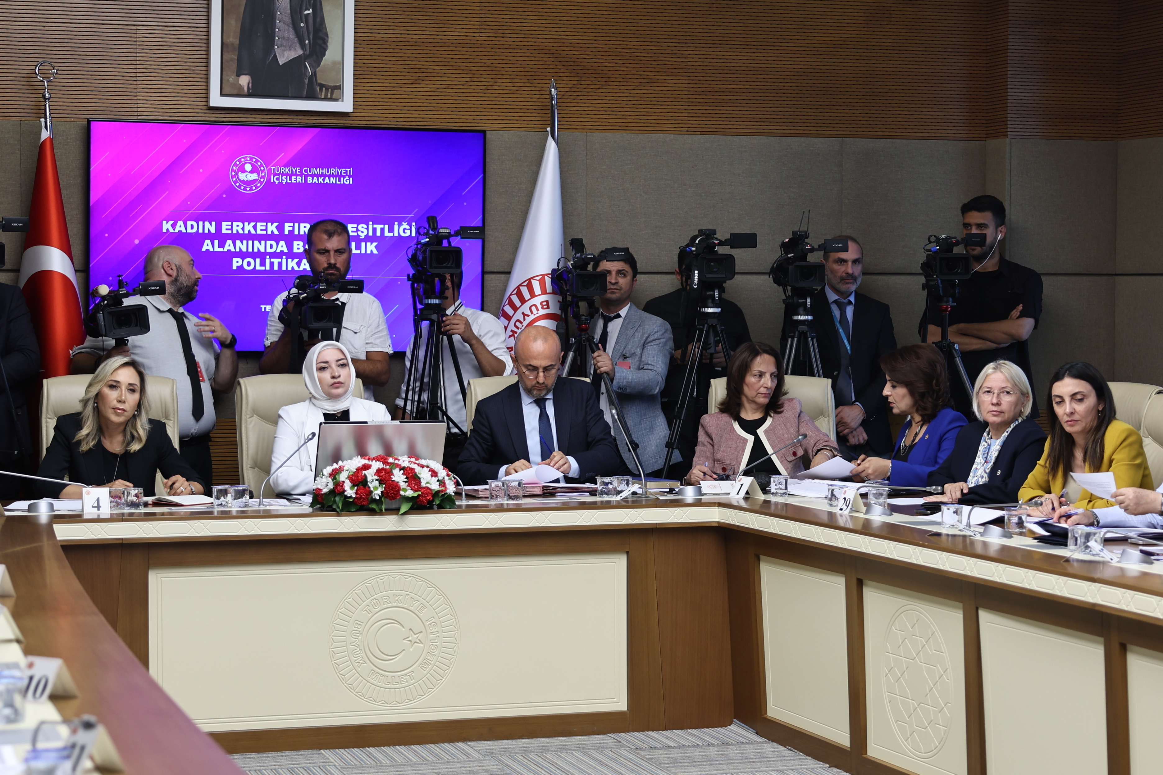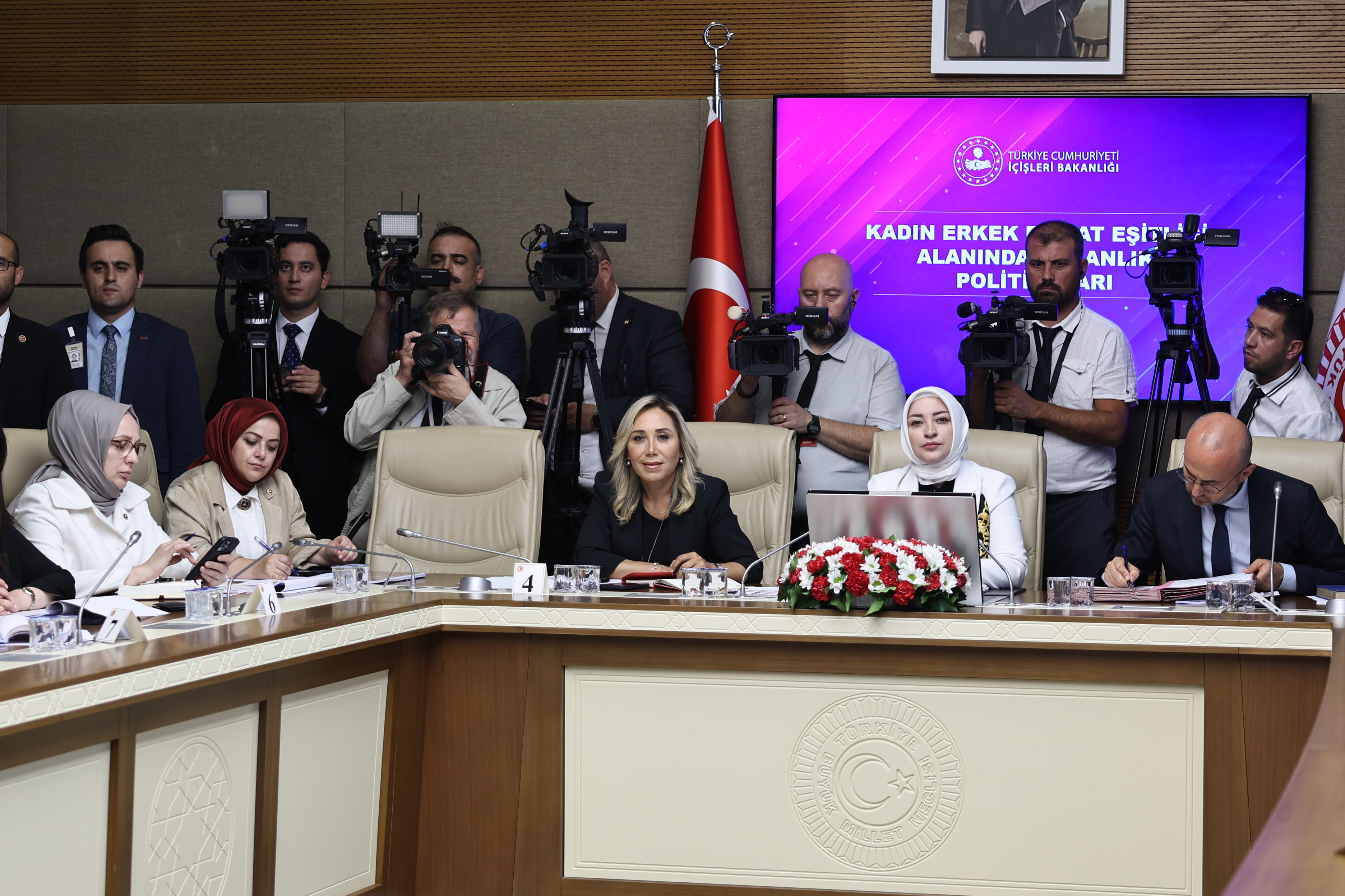 Yerlikaya'nın ardından Bakan Yardımcısı Mehmet Aktaş, İçişleri Bakanlığının kadın erkek fırsat eşitliği politikalarıyla ilgili sunum yaptı.