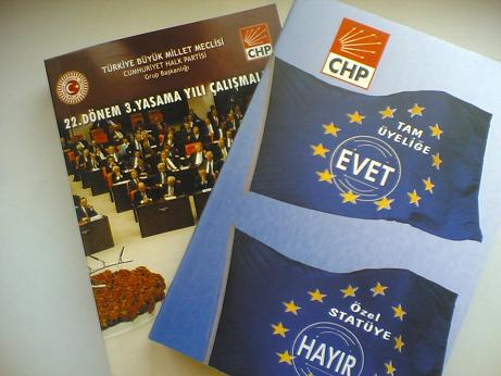 CHP'nin Türkiye'nin AB üyeliği konusundaki görüşlerinin yer aldığı ''Tam Üyeliğe Evet, Özel Statüye Hayır'' başlıklı kitap, bakan, milletvekili ve büyükelçilere gönderildi.