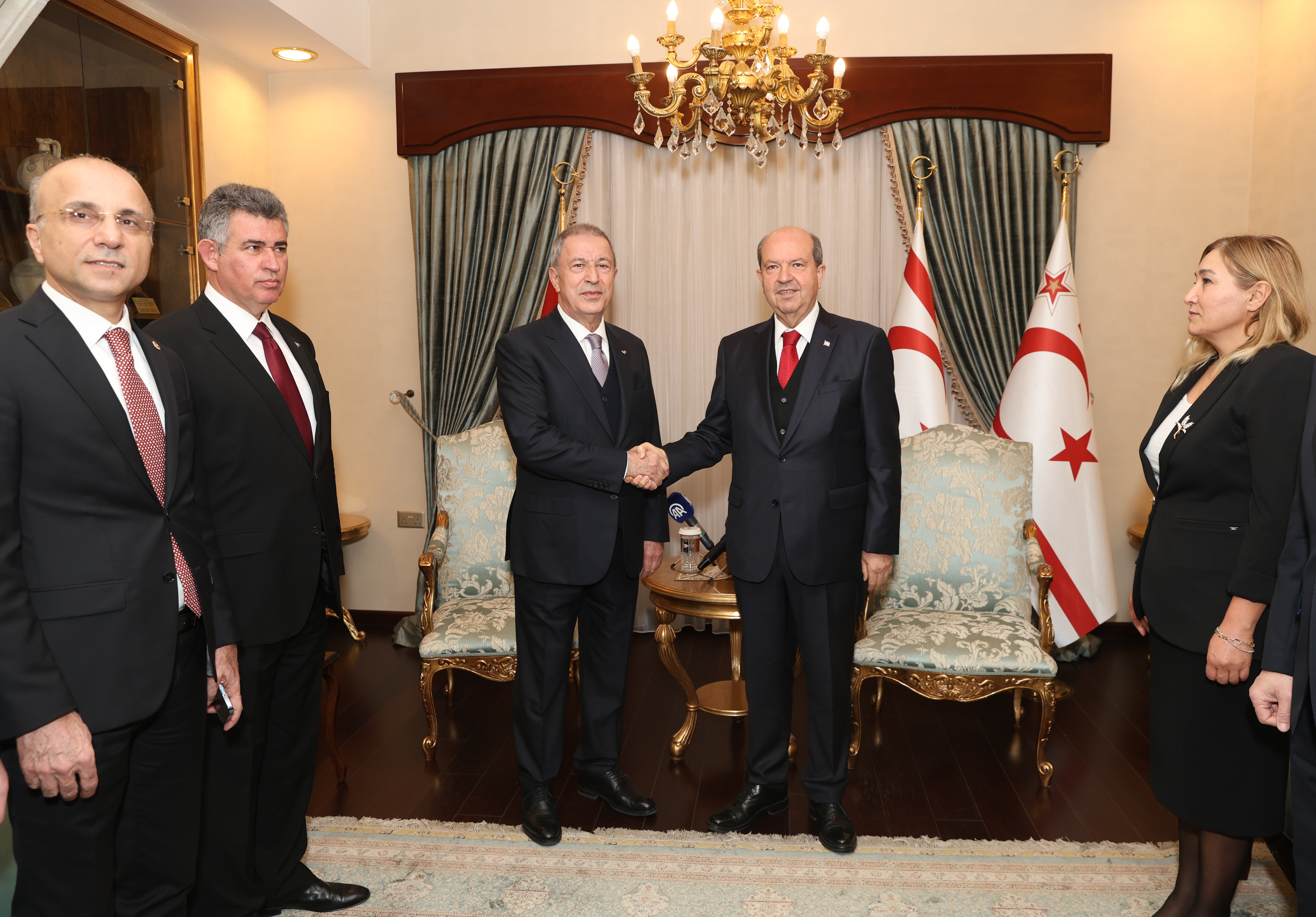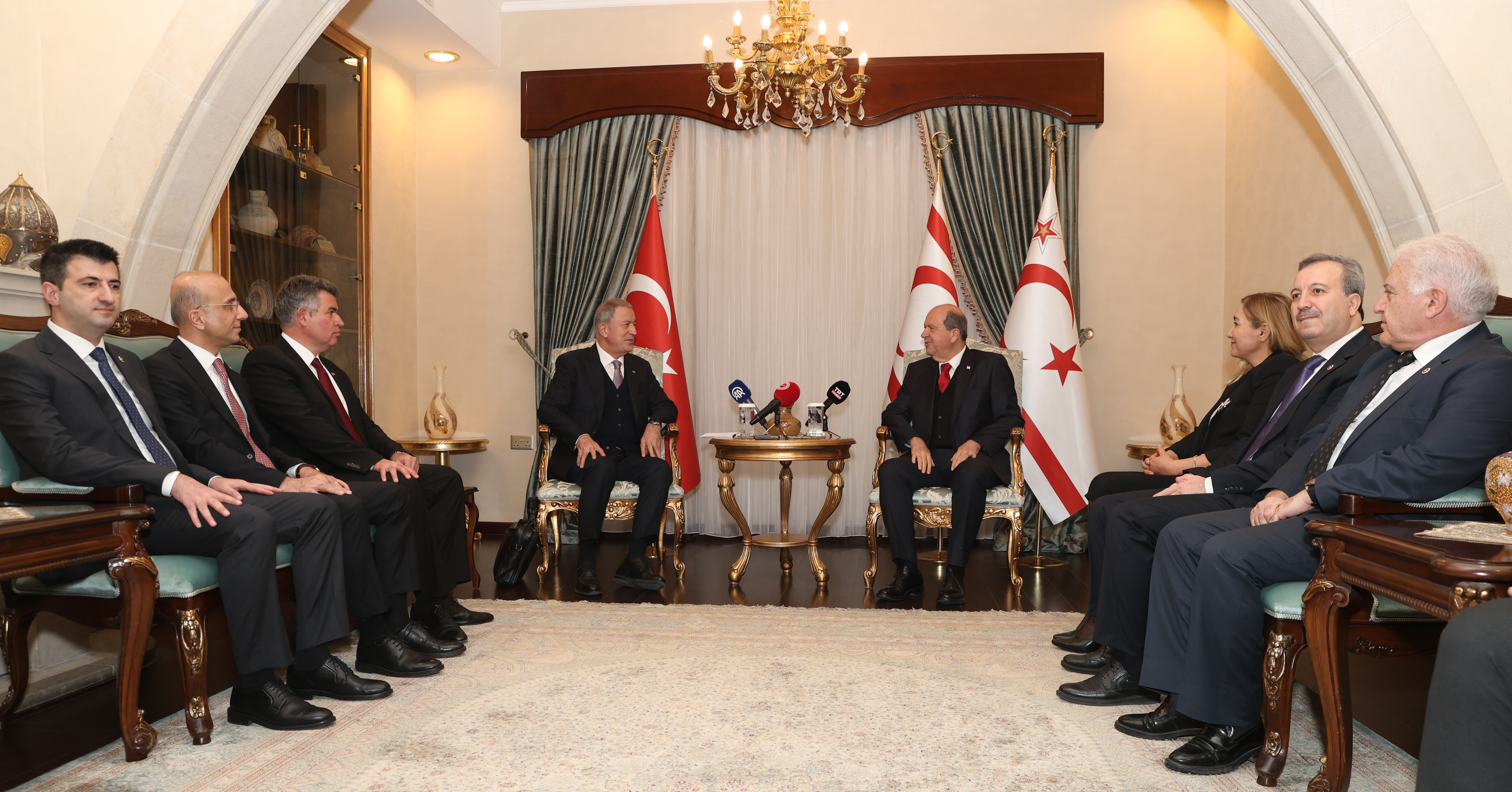 KKTC Cumhurbaşkanlığı'nda gerçekleşen ziyarette, Tatar, TBMM Milli Savunma Komisyonu Başkanı Akar, Türkiye'nin Lefkoşa Büyükelçisi Metin Feyzioğlu ve Komisyon üyeleriyle bir araya geldi.