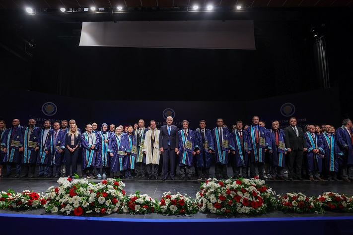 TBMM Başkanı Numan Kurtulmuş, tören sonunda katılımcılar, akademisyenler ve öğrencilerle fotoğraf çektirdi.