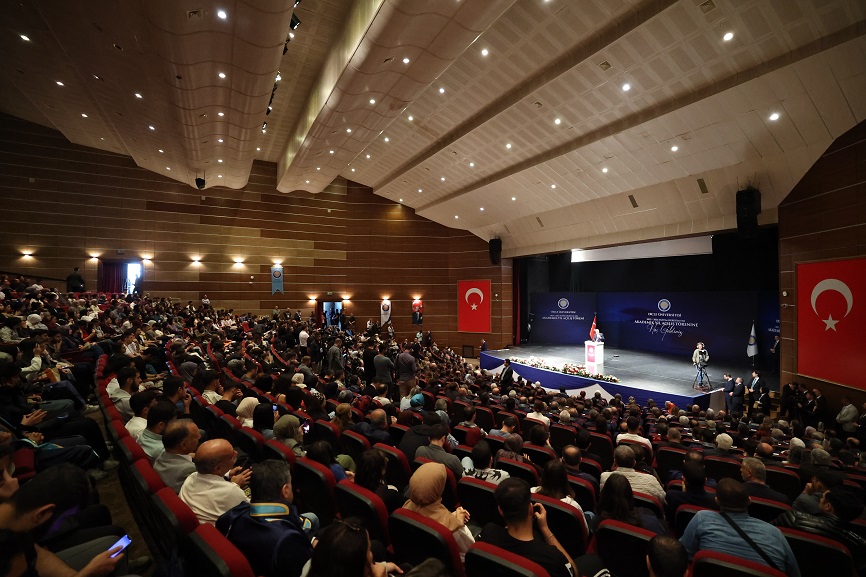 "Son 2 yıldır Gazze'de yaşadıklarımız bize bir kere daha öğretmiştir ki şu günlerde artarak beklenti haline getirilen barış çabalarına rağmen 3 yıldır Ukrayna-Rusya arasında çatışma devam etmektedir Artık dünyada barışı sağlayabilen küresel bir sistem mevcut değildir. Artık dünyada herhangi bir şekilde insanlığın hayrına çalışan bir sistem mevcut değildir. Sadece güçlünün gücünün hakim olduğu, güçsüz olanın ise ezildiği bir dünya sisteminden bahsediyoruz. Bunu değiştirmek için gayret sarf etmek de Türkiye'nin insanlarının vazifesidir. Hepimizin temel ödevlerinden birisidir. Üniversitelerimizin sorumluluğu budur, siyasetin sorumluluğu budur, sivil toplumun sorumluluklarından birisi budur. Hep beraber hem içeride kendi birliğimizi, dirliğimizi tahkim edecek ve böylece küresel ölçekte de adil bir küresel sistemin kurulması için mücadele edeceğiz."