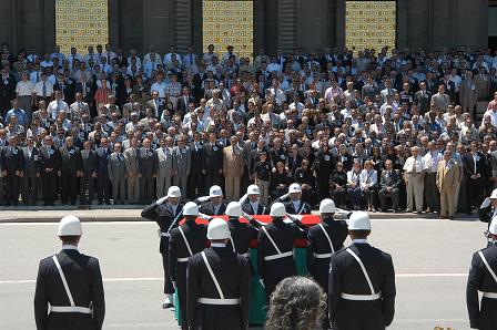 TBMM Bahçesi'ndeki törene, Özmen'in ailesi ve yakınları ile Meclis Başkanı Bülent Arınç, Başbakan Recep Tayyip Erdoğan, Bakanlar Kurulu üyeleri, DYP Genel Başkanı Mehmet Ağar, çok sayıda milletvekili ve Meclis çalışanı katıldı