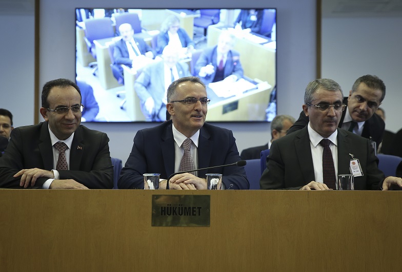 Maliye Bakanı Naci Ağbal, komisyon toplantısında tasarıya ilişkin sunumuna başladı.
