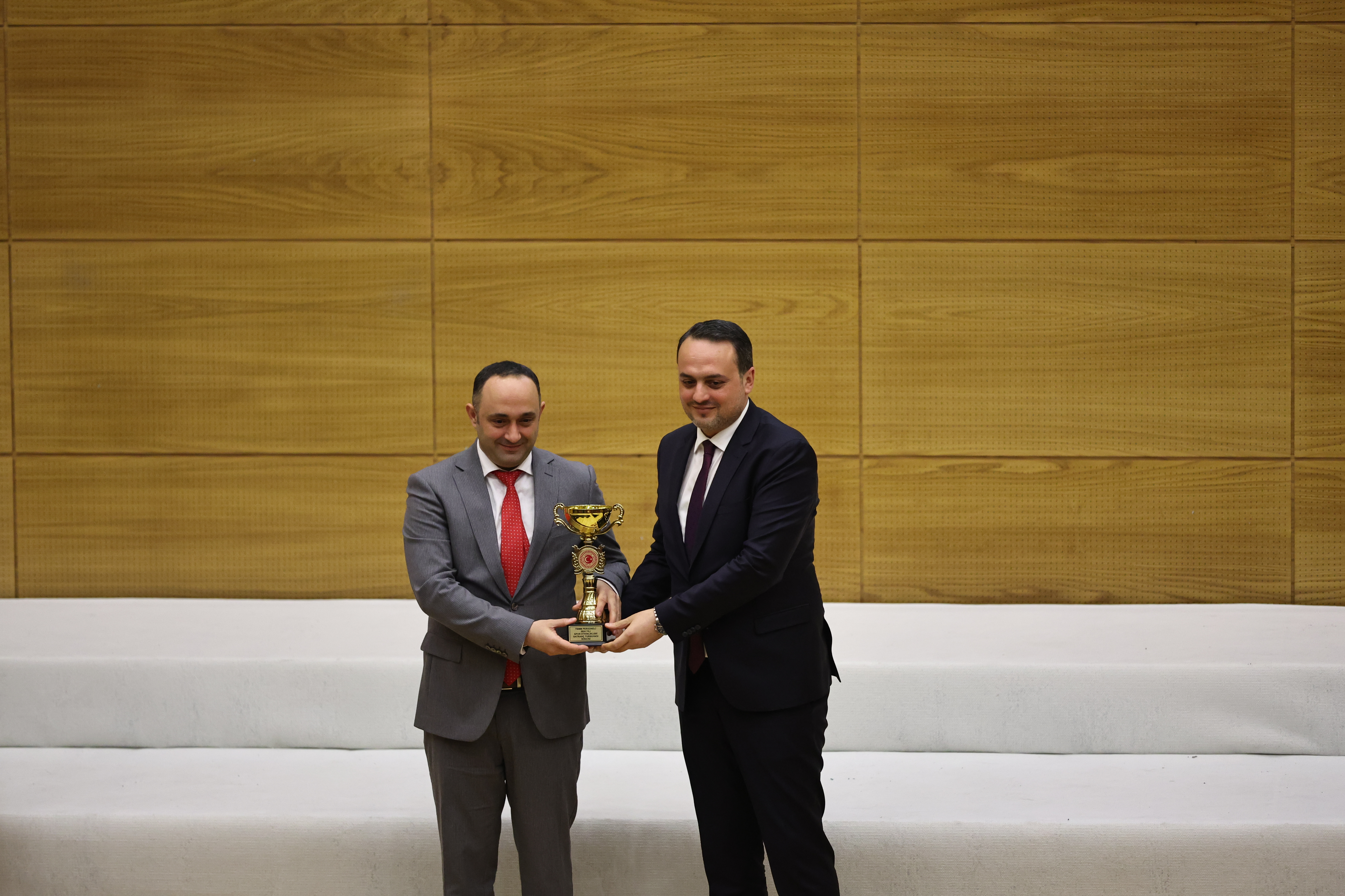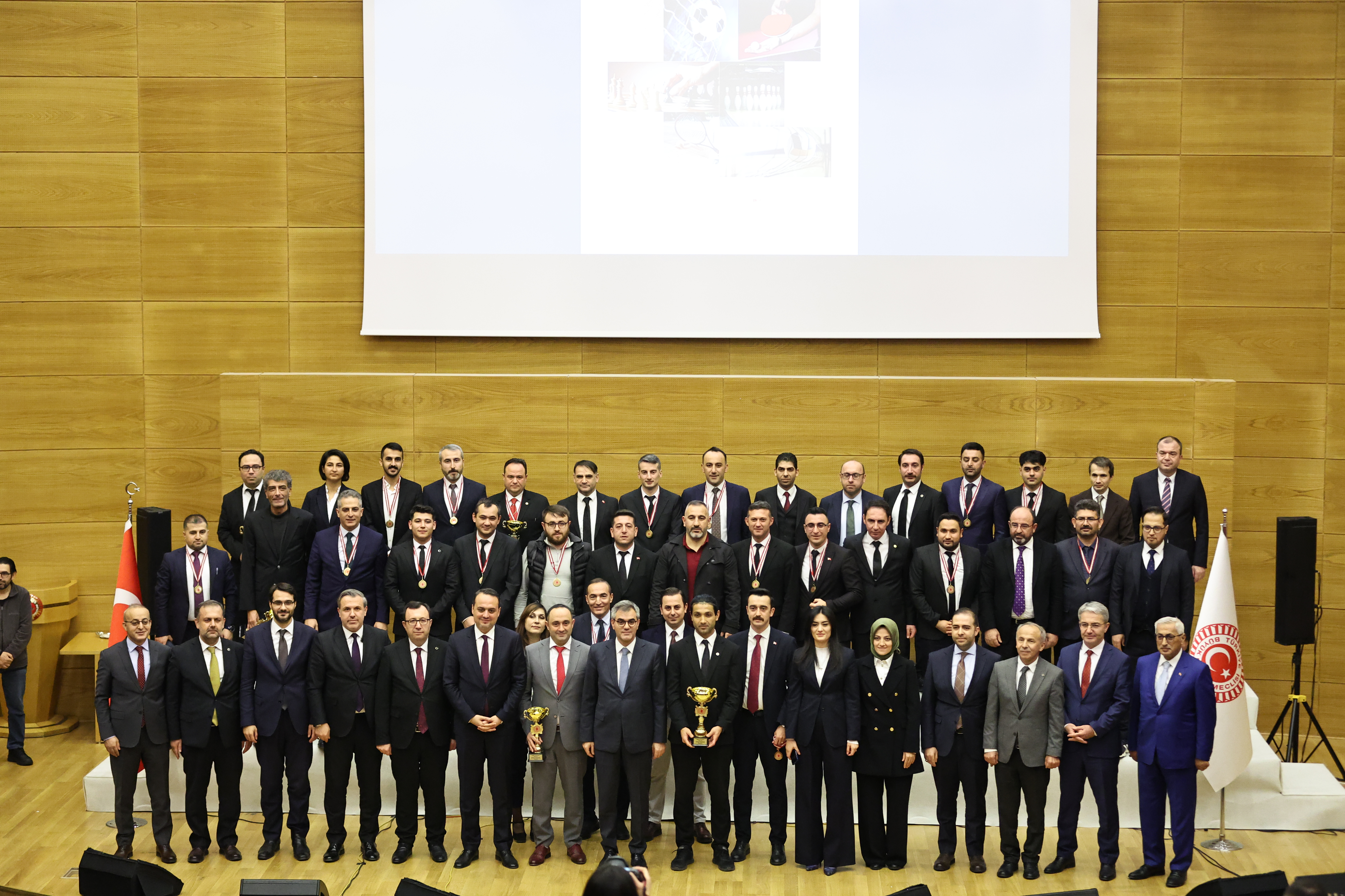 TBMM Genel Sekreteri Talip Uzun, futbol branşında şampiyon olan Destek Hizmetleri Başkanlığından Alagöz Futbol Takımının, bowling branşında şampiyon olan Bilgi İşlem Başkanlığının ve satranç turnuvası şampiyonu olan Mehmet Solak’ın kupa ve madalyalarını verdi.