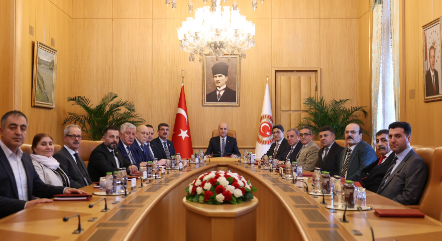 Kurtulmuş, TBMM Başkanlık Divanı Toplantı Salonu'nda, AK Parti Batman Milletvekili Ferhat Nasıroğlu, AK Parti Bingöl Milletvekili Zeki Korkutata, Midyat Belediye Başkanı Veysi Şahin ile beraberlerindeki Ezidi heyetini kabul etti.