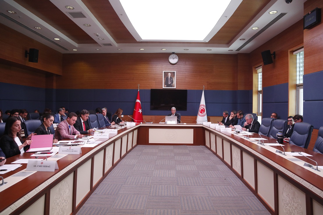 Komisyon, kanun tekliflerini görüşmek üzere AK Parti İstanbul Milletvekili Volkan Bozkır başkanlığında toplandı.