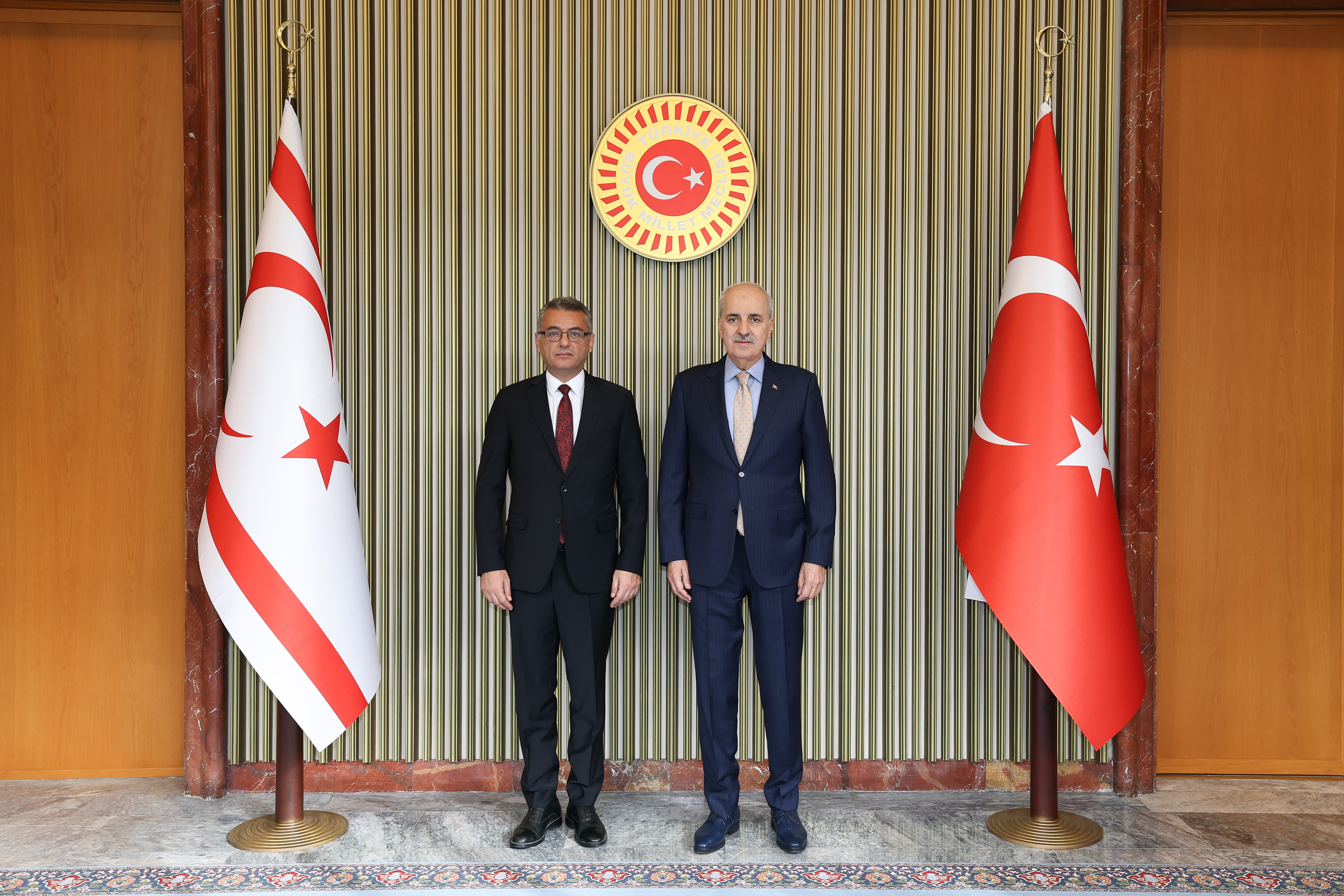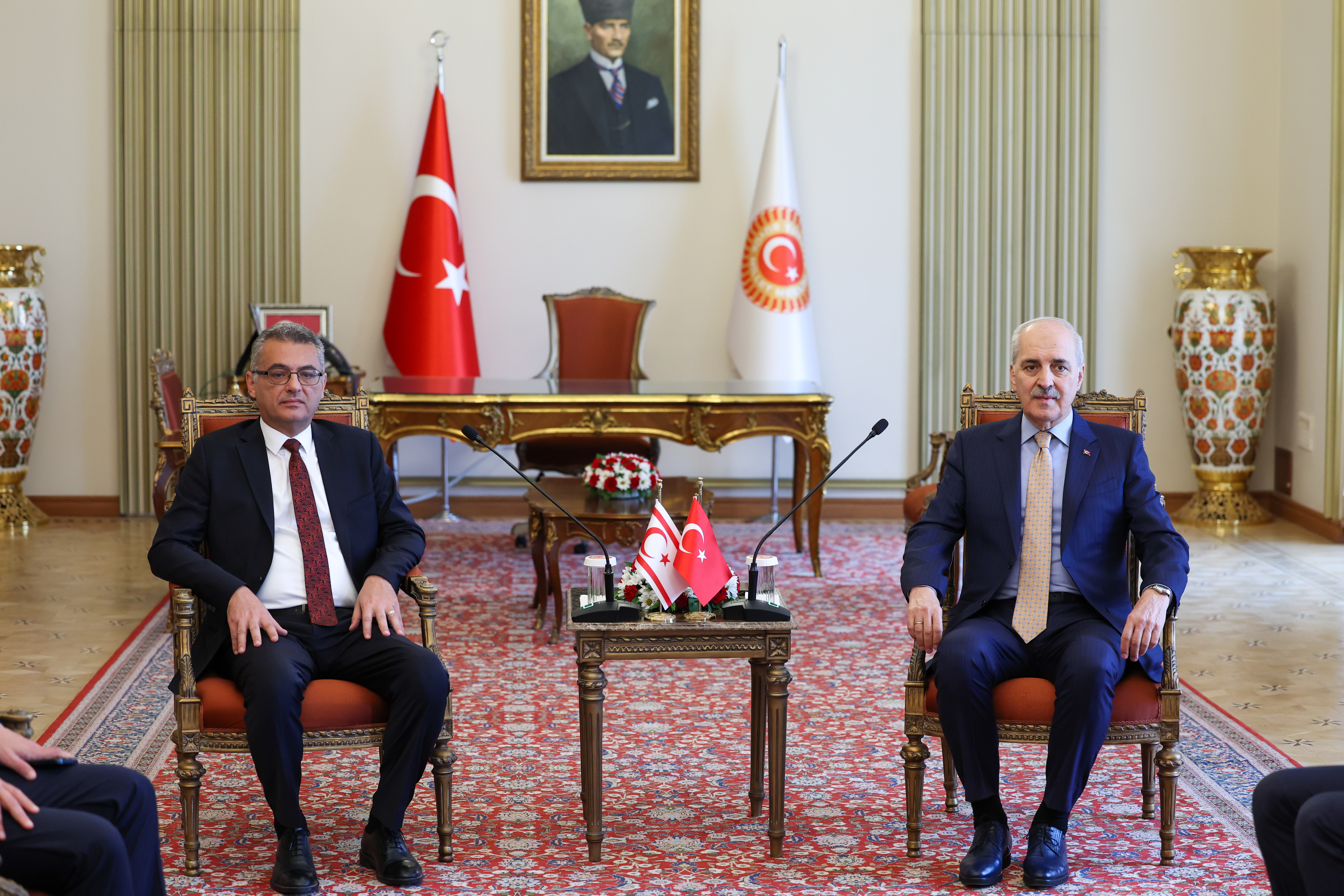 Kurtulmuş, ilk resmi yurt dışı ziyaretini Türkiye’ye gerçekleştiren Kuzey Kıbrıs Türk Cumhuriyeti (KKTC) Cumhurbaşkanı Tufan Erhürman ile Meclis’te bir araya geldi.