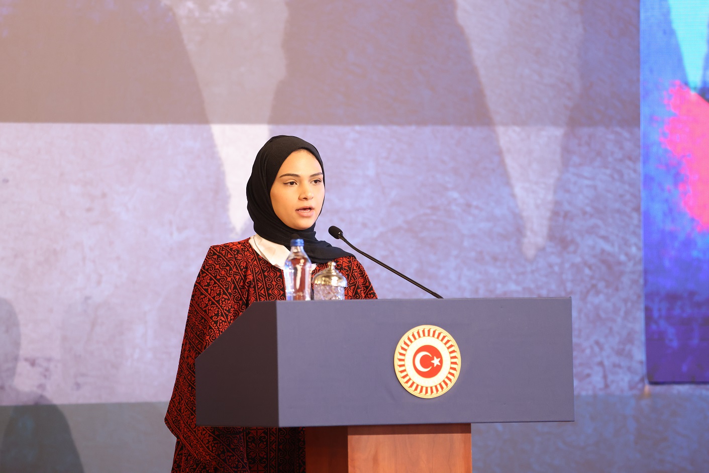 TBMM Başkanı Numan Kurtulmuş'un himayesinde gerçekleştirilen panel öncesinde, ailesi Gazze'de olan Ankara Üniversitesi Eczacılık Fakültesinde okuyan Besan Alafıfı bir konuşma yaptı.