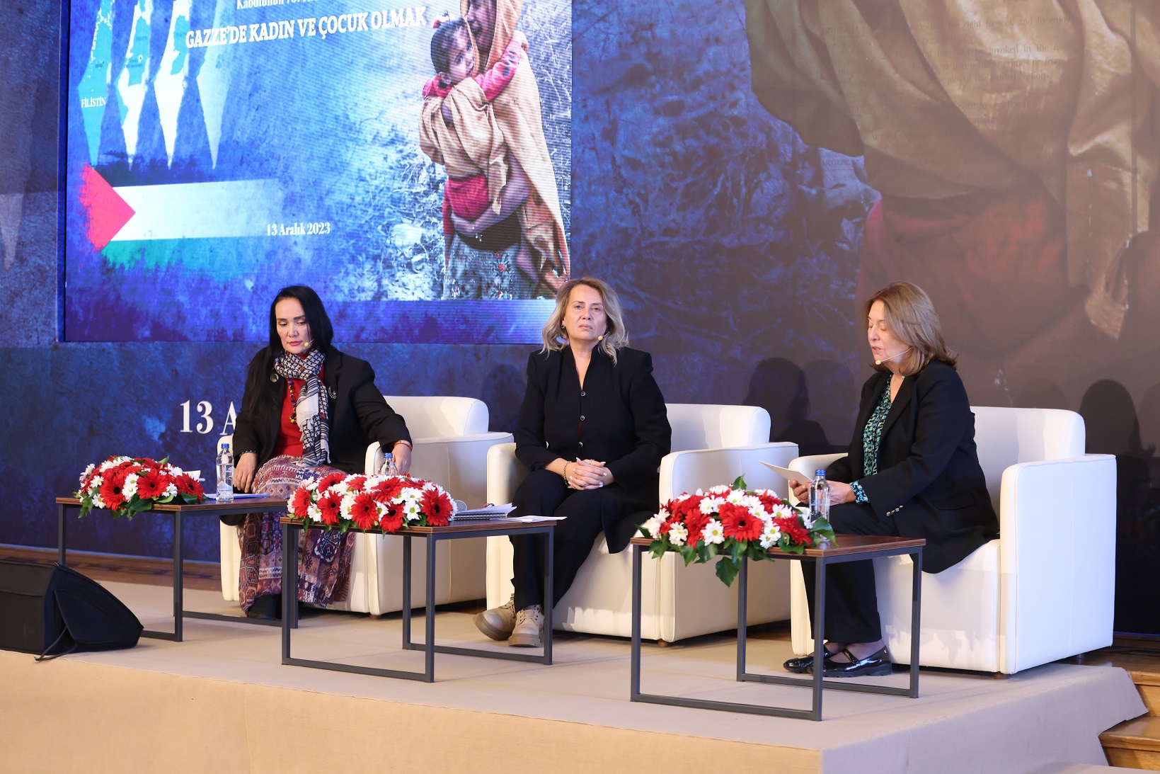 Filistin Kadın İşleri Bakanı Amal Hamad da panele video mesaj ile katıldı. Saygınlık ve adalet hayalleri kuran halkı adına konuştuğunu, ölü ve yaralıların sayılarını vermeyeceğini dile getiren Hamad, "Biz sadece rakamlardan ibaret değiliz. Filistin halkı etnik temizlikle karşı karşıya. Camilere, okullara, hastanelere, kiliselere karşı bir savaş var. En tehlikelisi insanlığa ve onların haysiyetine karşı bir savaş var." değerlendirmesinde bulundu.