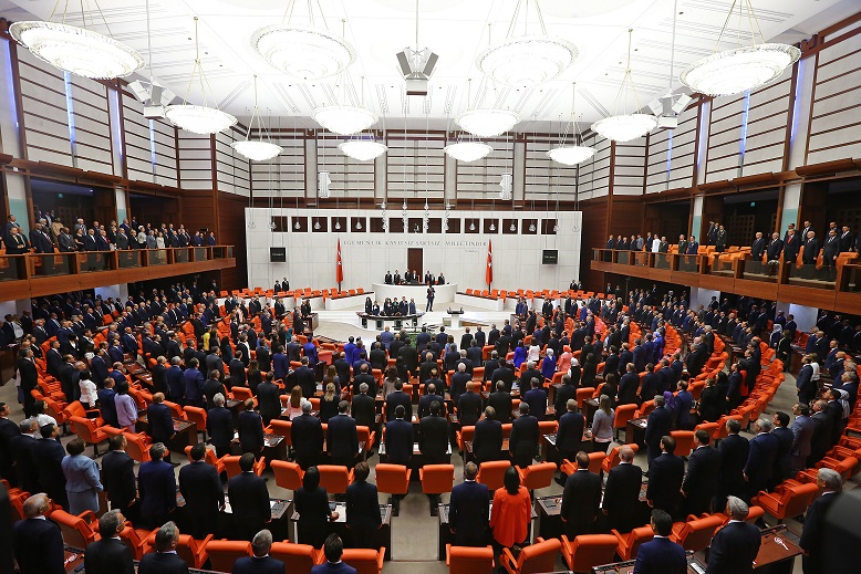 Saygı duruşunun ardından Cumhurbaşkanı Recep Tayyip Erdoğan, AK Parti milletvekilleri ve locada bulunan izleyicilerin alkışları eşliğinde salondan ayrıldı.