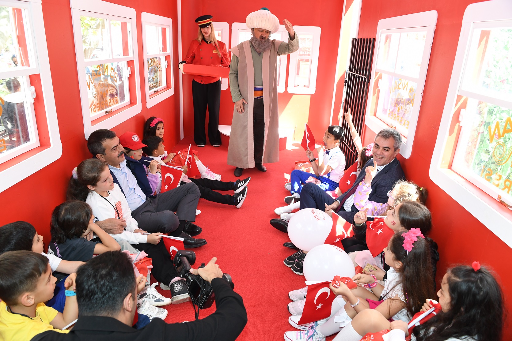 Meclis kampüsünde kurulan "23 Nisan Ekspresi" isimli özel trende çocuklar, "Cumhuriyet’in kurulmasından gelecek yüzyıla doğru" bir yolculuk gerçekleştirdi.