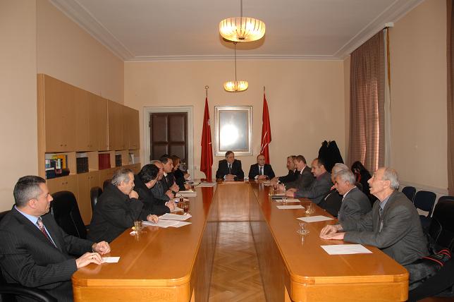 Başkent Muhtarlar Federasyonu Başkanı Vedat Şabanoğlu ve beraberindeki bir grup Ankaralı mahalle muhtarı CHP Grup Başkanvekili Hakkı Suha Okay'ı ardında da MHP Grup Başkanvekili Mehmet Şandır'ı ziyaret etti.