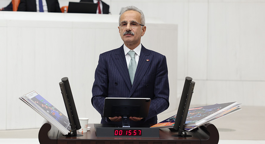 "Yürüttüğü faaliyetlerin karbon emisyonunu hesaplayan ilk Bakanlık olarak iklim değişikliğinin etkilerini önemsiyor, projelerimizin çevreye duyarlı ve ekolojik dengeyi korumasına önem gösteriyoruz. Üç kıtayı birbirine bağlayan jeopolitik konumu ve önemli ticaret yollarının üzerinde bulunması, ülkemizi lojistik ve ulaşım açısından bir merkez haline getirmiştir. Konumumuzun getirdiği bu avantajlardan hareketle ulaşım ve iletişim stratejilerimizi küresel ve bölgesel şartları dikkate alarak oluşturuyoruz ve geliştiriyoruz. Çin, Doğu Asya ve Hindistan'dan gelen yükleri Avrupa'ya taşıyacak Kalkınma Yolu Projesiyle, uluslararası işbirliği çalışmalarımızı yürütüyoruz. Zengezur Koridoru'nun da hayata geçirilmesiyle Azerbaycan'a, Orta Asya'ya ve Uzak Doğu'ya erişimi doğrudan sağlamış olacağız."