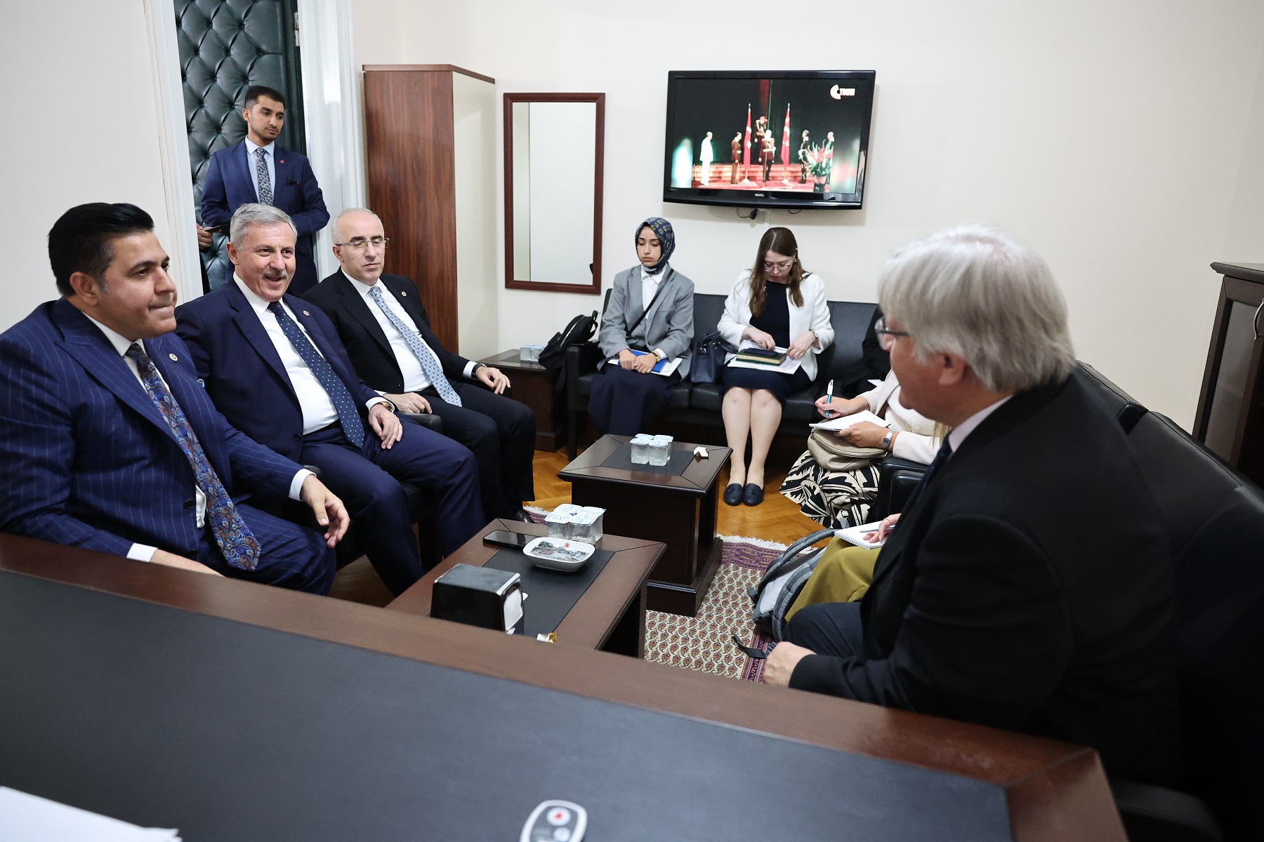 TBMM’deki siyasi parti gruplarını da ziyaret eden heyet ilk olarak AK Parti Grup Başkanı Abdullah Güler ve Grup Başkanvekili Muhammet Emin Akbaşoğlu ile görüştü.