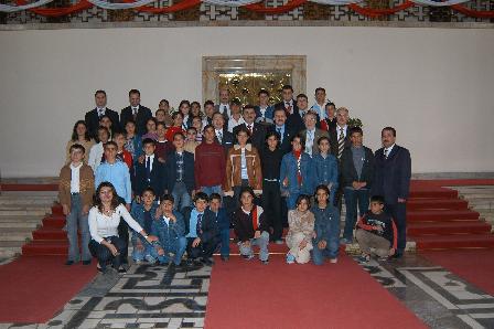 Aksaray'dan ve Diyarbakır'dan gelen öğrenciler, bugün saat 10.00'da Anıtkabir'i ziyaret ettikten sonra saat 11.30'da Türkiye Büyük Millet Meclisi'ne geldiler. Öğrencilere, Aksaray Milletvekilleri Ruhi AÇIKGÖZ, Ali Rıza ALABOYUN, Ramazan TOPRAK, Ahmet YAŞAR ve Diyarbakır Milletvekilleri Ali İhsan MERDANOĞLU, Mehmet M. EKER, M. İhsan ARSLAN, Aziz AKGÜL, Cavit TORUN, İrfan R. YAZICIOĞLU tarafından Üyeler Lokantasında öğle yemeği verildi. Öğrencilere, Millî Egemenlik Yılı dolayısıyla hazırlanan bayrak, şapka, bisküvi, şekerleme, broşür ve isimlerine hazırlanan berat takdim edildi.