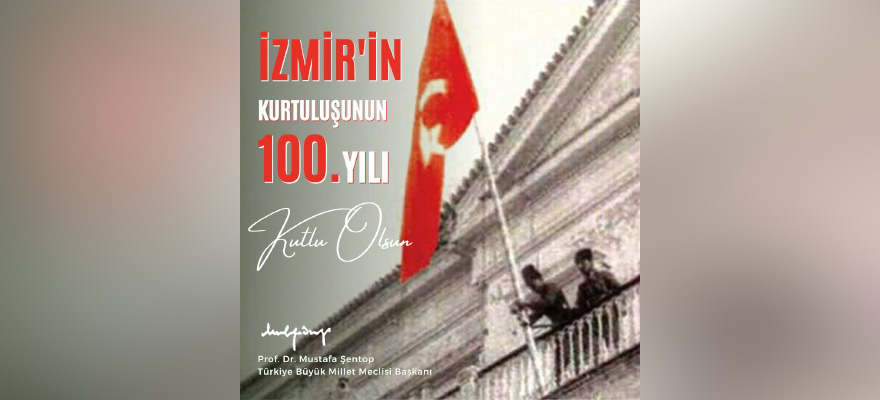 TBMM Başkanı Prof. Dr. Mustafa Şentop, İzmir'in düşman işgalinden kurtuluşunun 100'üncü yıl dönümü dolayısıyla mesaj yayımladı.