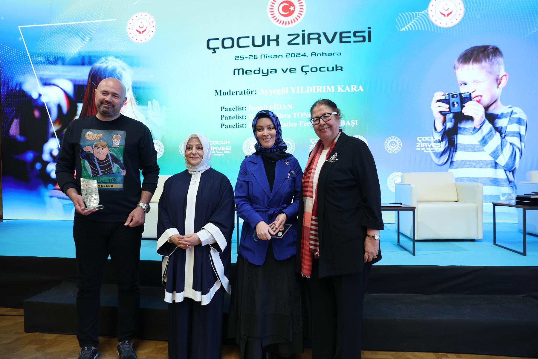 Aile ve Sosyal Hizmetler Bakanlığı Çocuk Hizmetleri Genel Müdürü Ayşegül Yıldırım Kara moderatörlüğündeki oturuma, Prof. Dr. Hatice Ferhan Odabaşı, yapımcı ve yönetmen İsmail Fidan, yazar Hatice Kübra Tongar konuşmacı olarak katıldı.