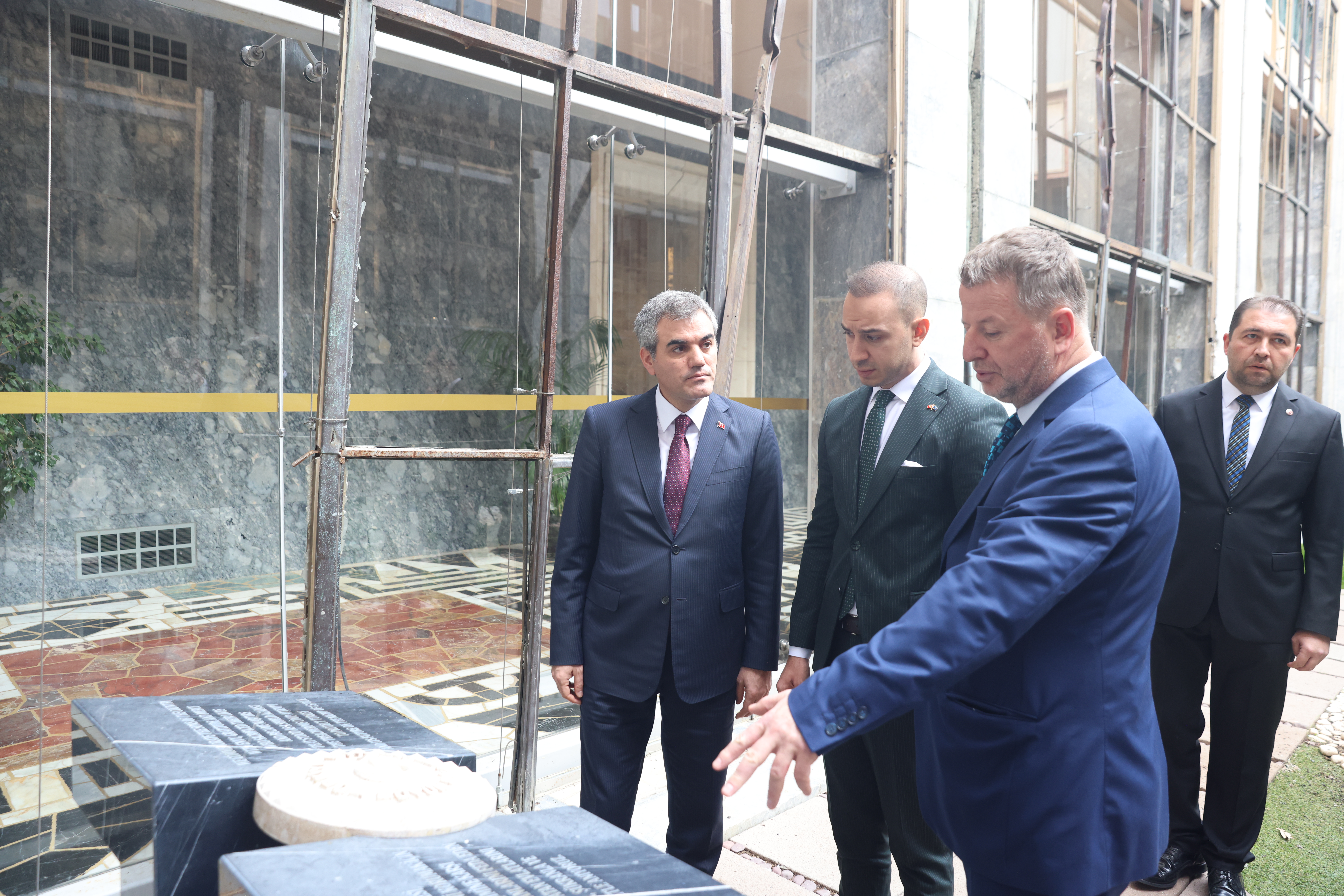 Konuk heyet, daha sonra Meclis Genel Sekreteri Talip Uzun ile birlikte 15 Temmuz’da hain darbe girişiminde hasar gören yerleri ve Genel Kurul Salonu’nu gezdi, Şeref Merdivenlerinde hatıra fotoğrafı çektirdi.