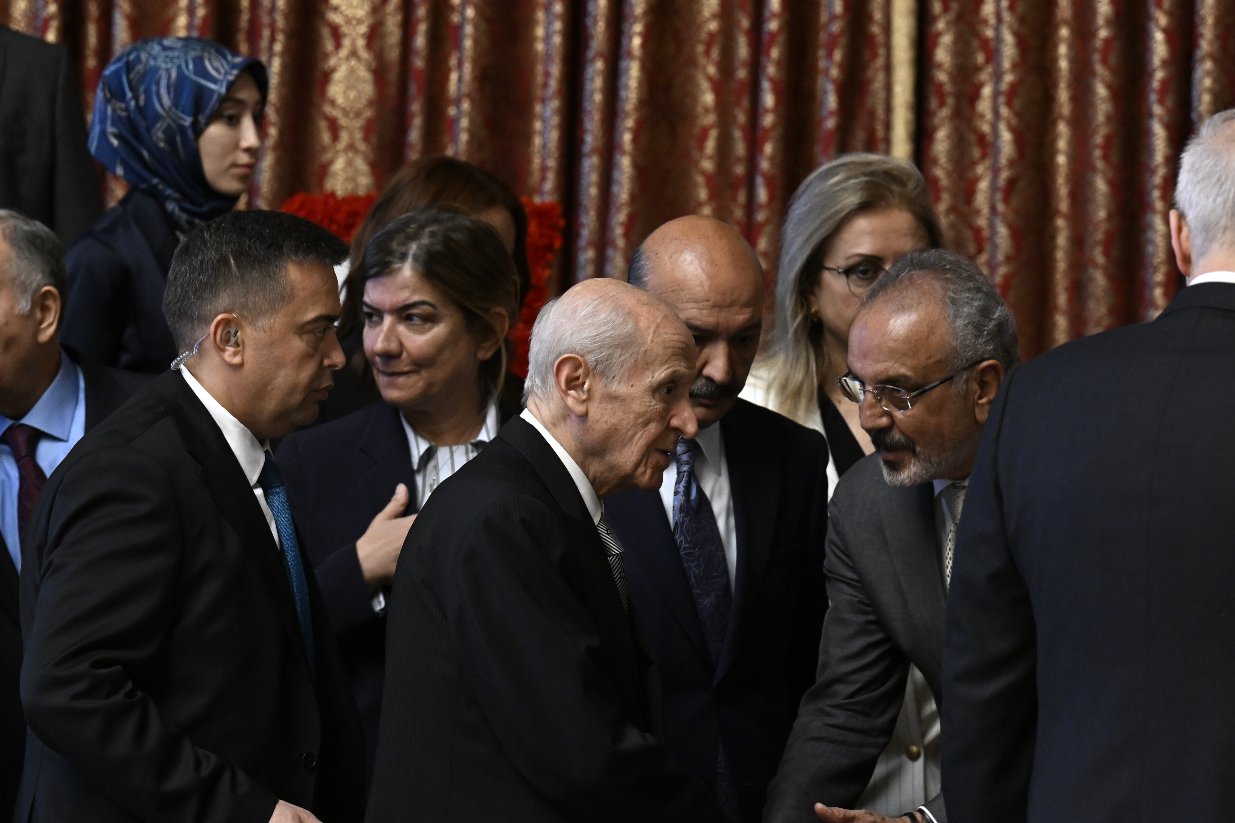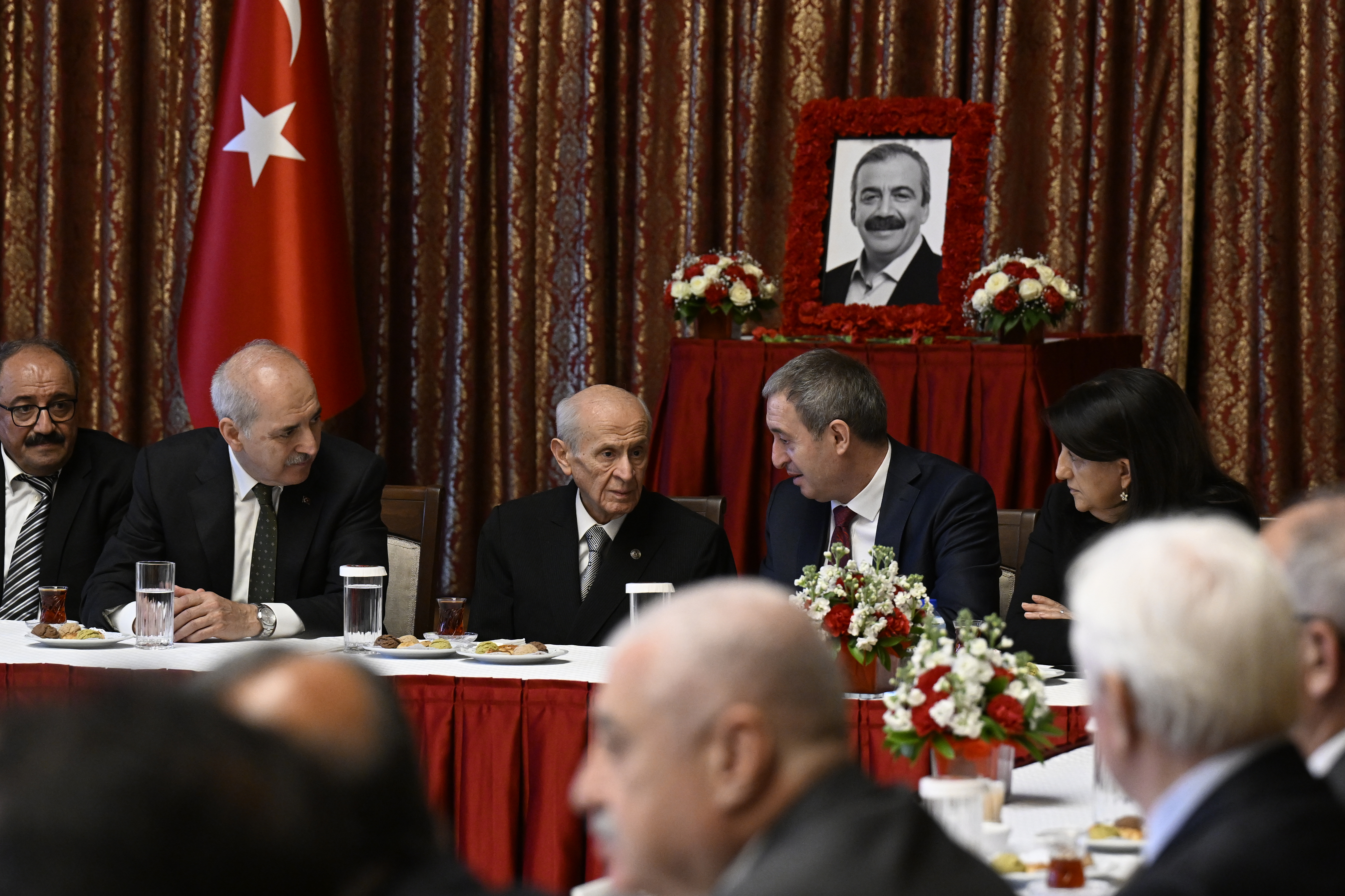 DEM Parti heyetine başsağlığı dileklerini ileten Bahçeli, TBMM Başkanı Kurtulmuş, DEM Parti Eş Genel Başkanı Tuncer Bakırhan, DEM Parti Van Milletvekili Pervin Buldan ve Sırrı Süreyya Önder'in kardeşi Ali Fuat Önder ile bir süre sohbet etti.
