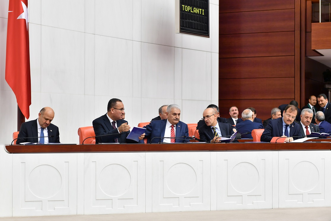 TBMM Başkanı Kahraman, birleşimi açtıktan hemen sonra Başbakan Binali Yıldırım, AK Parti milletvekillerinin alkışlarıyla salona girdi.