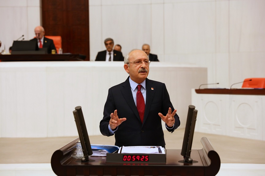 CHP Genel Başkanı Kemal Kılıçdaroğlu ise İsmail Kahraman konuşurken salona girerek, CHP Grubunun ön sırasındaki yerini aldı.