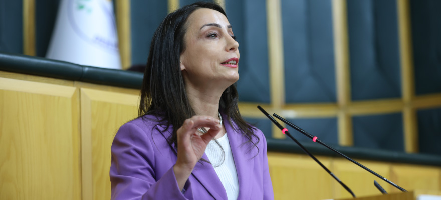 "Bahçeli, 'Türkçe konuşmayanların Meclis'te yeri yok' diyerek DEM Partinin parlamentoda yeri olmadığını söylüyor. Parlamento sözün kurulduğu, siyasetin konuştuğu, savaşların ve çatışmaların ve ülkede yaşanan bütün sorunların konuşulup çözüm bulunduğu bir siyaset alanıdır. Parlamentoyu bunun dışında, adeta cellatları parlamentoya çağırırcasına 'Kürtçe konuşanların burada yeri yoktur. DEM Partililerin burada yeri yoktur' diyenlere yanıtımız çok net olarak şudur; Biz, DEM Partililer olarak sadece Kürtçe konuşmuyoruz, Arapça da Türkçe de konuşuyoruz, Süryanice de konuşuyoruz. Anadolu ve Mezopotamya topraklarında bütün kadim dilleri konuşan bir siyasi partiyiz. Bizim yerimiz parlamentodur. Parlamentoda yeri olmayanlar, savaş çığırtkanlığı yapanlardır. Bizim yerimiz burasıdır."