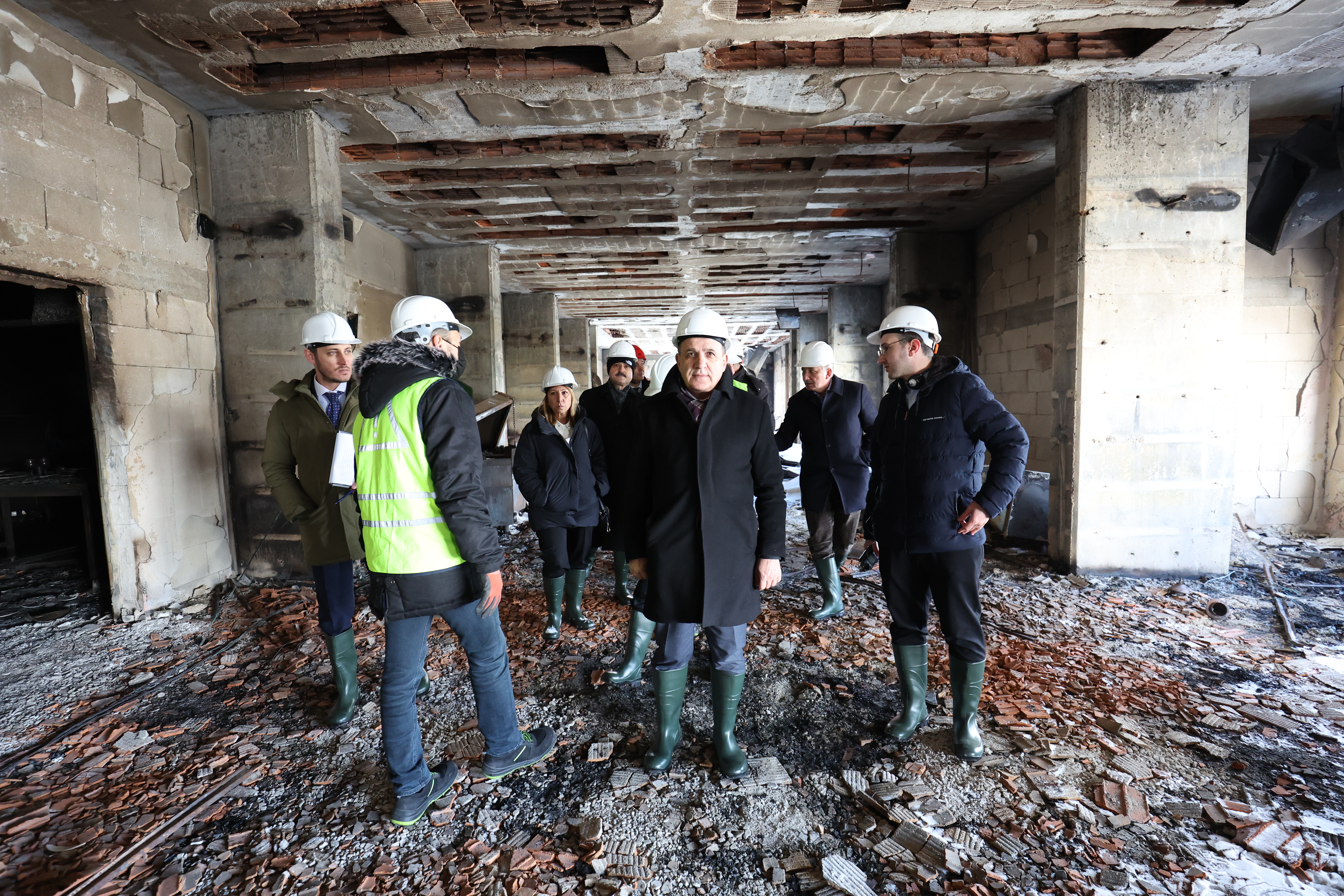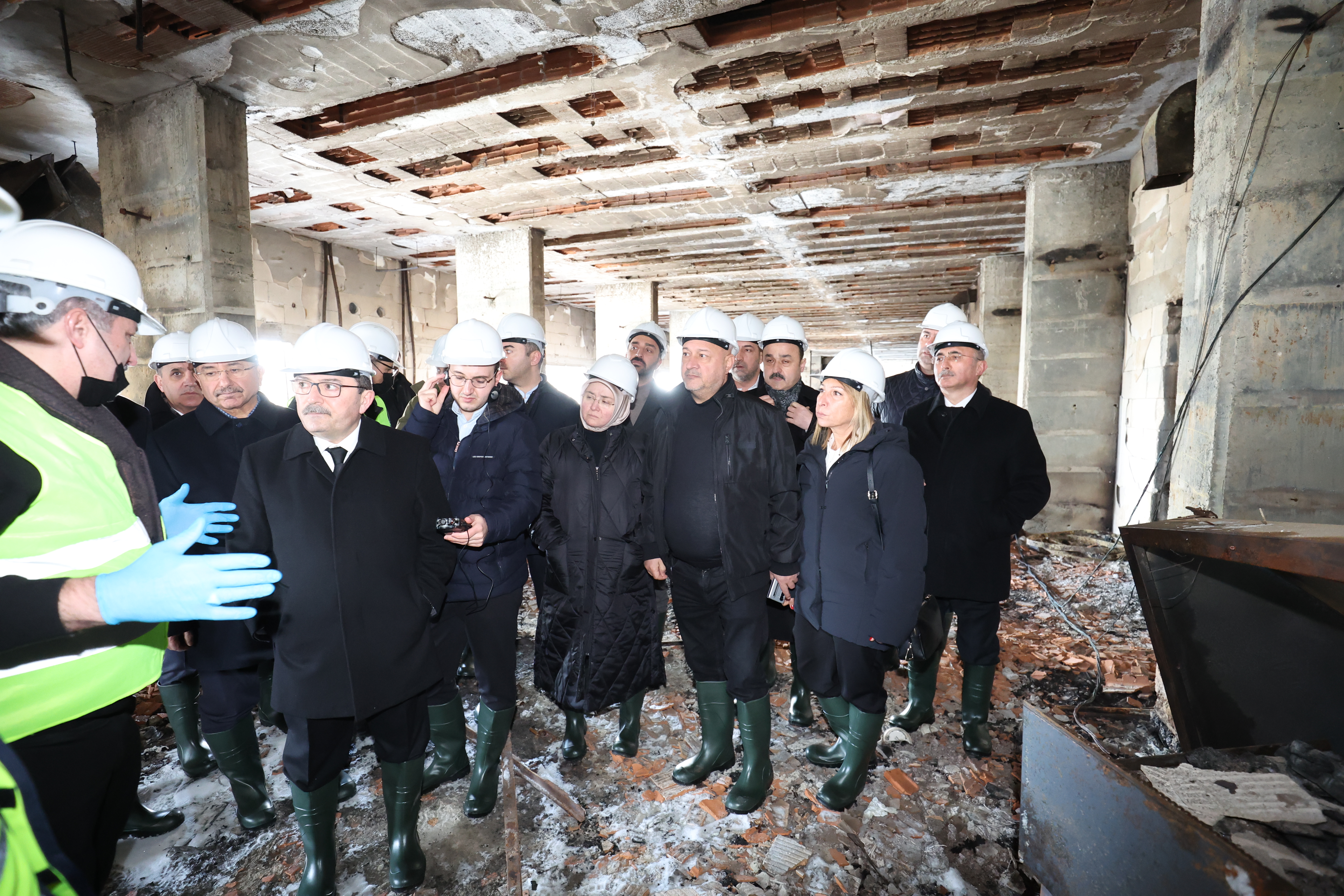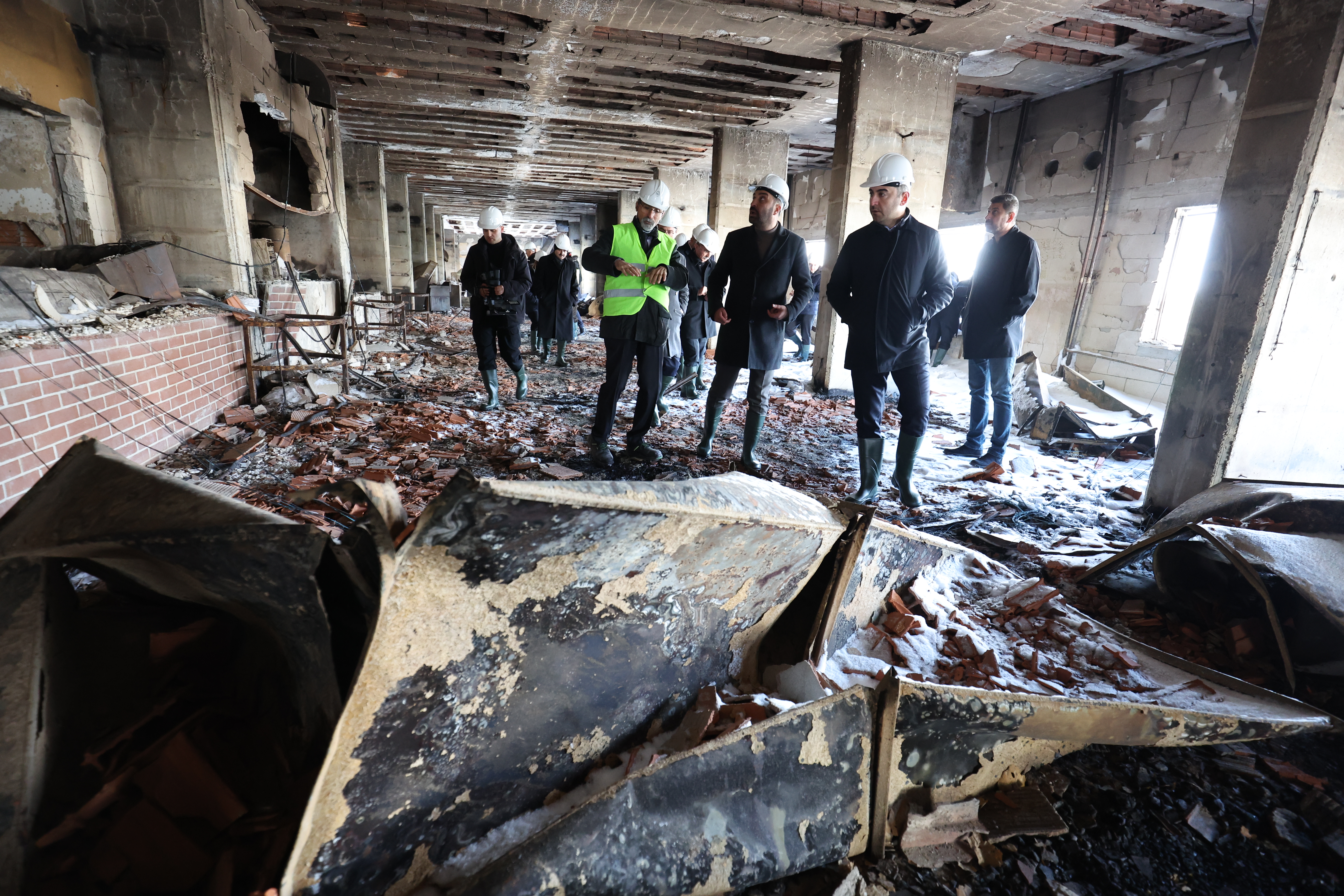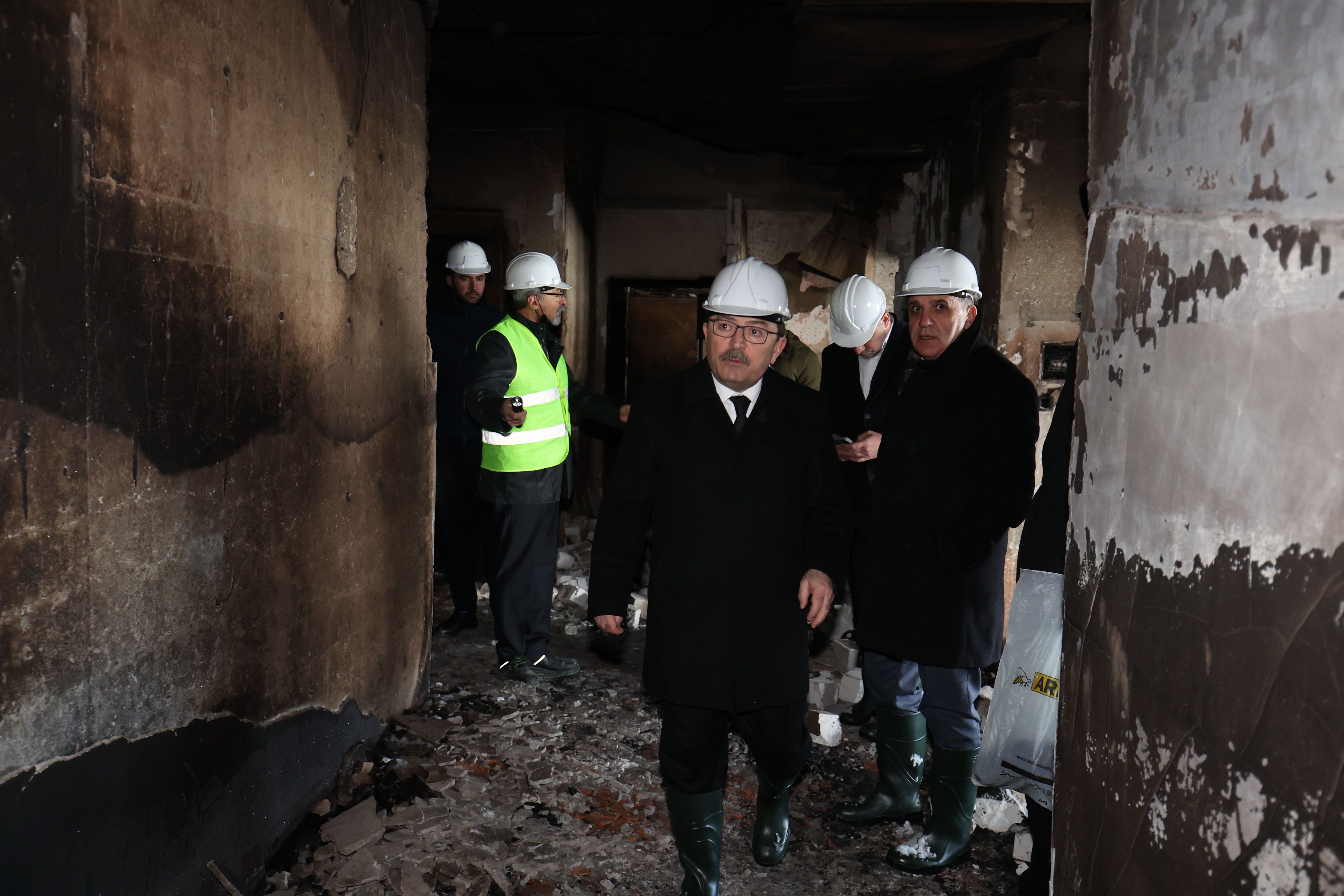 Heyet, yangının meydana geldiği otel ve çevresinde incelemede bulundu.