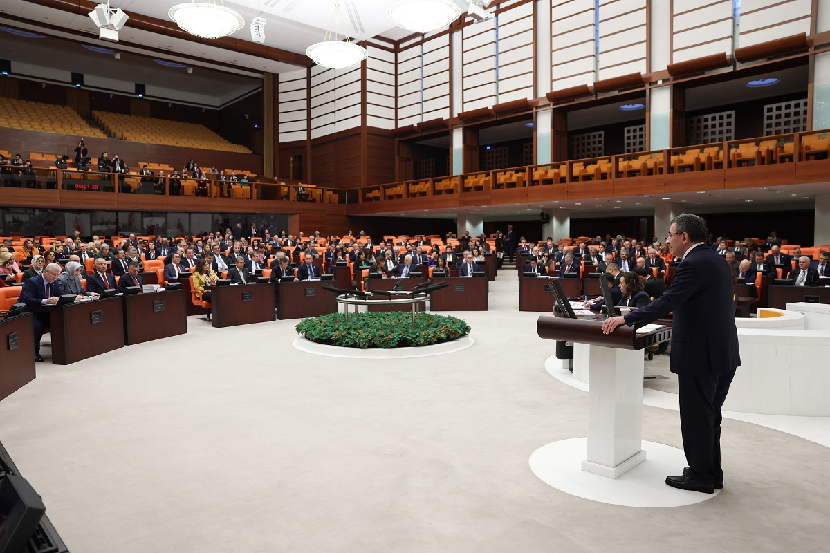 Cevdet Yılmaz, bütçede, istikrarlı büyümenin sağladığı imkanların insan odaklı ve sosyal refahı artırıcı bir yaklaşımla toplumun bütün kesimleriyle paylaşılmasına öncelik verildiğini dile getirerek, "2024 yılı bütçemizi, milli teknoloji hamlesi, enerji ve gıda arz güvenliği, yeşil ve dijital dönüşüm gibi stratejik alanlarda milletimize verdiğimiz sözleri yerine getirmek için kullanacağız. Çığır açan teknolojiler başta olmak üzere her alanda reel sektörümüzün yanında olacak, üretim ekosistemimizi destekleyeceğiz." diye konuştu.