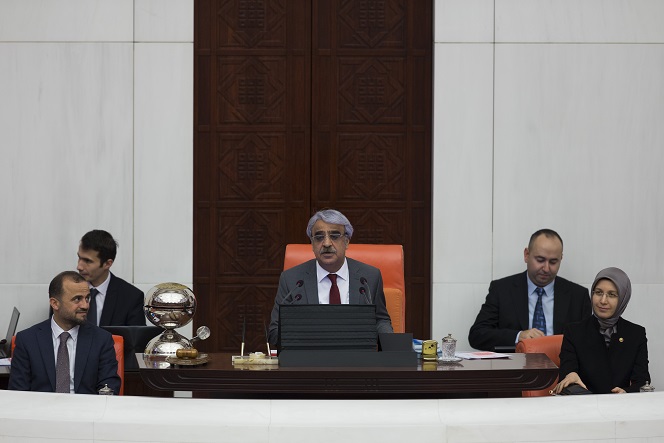 "Şu anda 9 milletvekilinin vekilliği düşmüş,10 milletvekili de cezaevlerinde bulunmaktadır. Böyle bir parlamentonun ne parlamentoculuğun tarihsel anlamına ne de Türkiye'deki tarihsel tecrübeye uygun düştüğü kesinlikle söylenemez. Ben başkanlığı vekaleten üstlenip Genel Kurul'u yönetirken veya başkanvekilliğinin diğer yetkilerini kullanırken adalet ve demokrasi ilkelerine bağlı kalacağıma buradan bir kez daha huzurunuzda söz veriyorum."