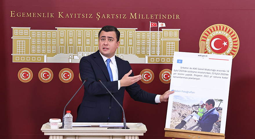 "Mansur Yavaş zamanında 549 milyon liraya çıkan tek bir hat olan Polatlı hattının 5 yıldır yapımı devam ediyor ve maliyet 2,5 milyar liraya yükseldi. Kabiliyetsiz olabilirsiniz, bir işi beceremiyor da olabilirsiniz ama 384 kilometre hat, AK Parti döneminde 7,5 ayda bitiriliyorsa 107 kilometrelik Polatlı hattını nasıl 5 senede yaparsınız? Burada bir vurgun vardır. Bu vurgun nedir? Yıllar içerisinde enflasyon oranlarında hem borulardan hem yapım maliyetlerinden işin maliyetini yükseltip birilerine Ankara'nın parasının peşkeş çekilmesidir."