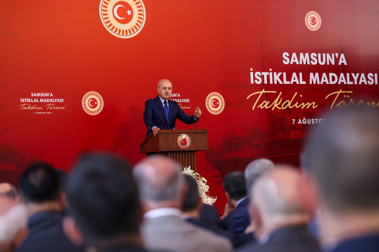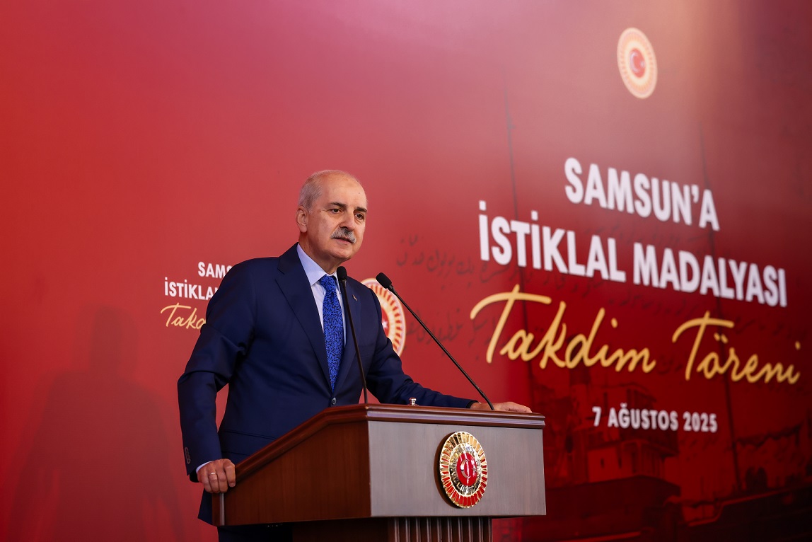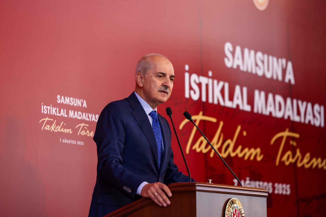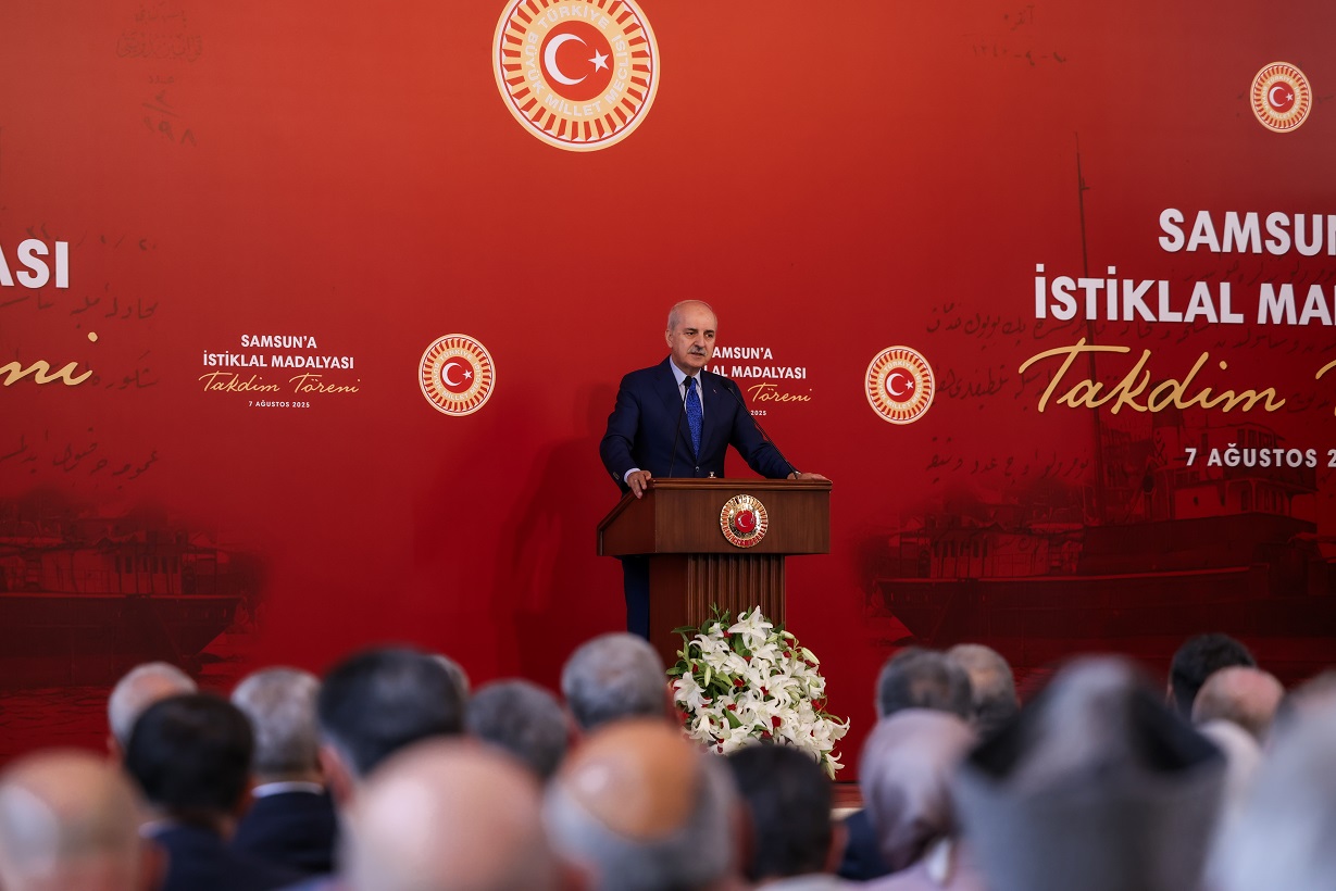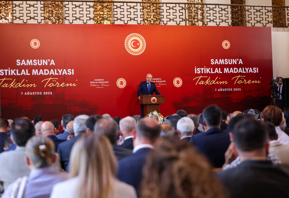Kurtulmuş, ilk Cumhurbaşkanı ve ilk Meclis Başkanı Gazi Mustafa Kemal Atatürk'ün imzasıyla verilen bu istiklal madalyasının, bugün 30'uncu Meclis Başkanı olarak kendi döneminde Samsun'a fiilen tevdi edilmesinden dolayı çok büyük bir onur duyduğunu belirtti.