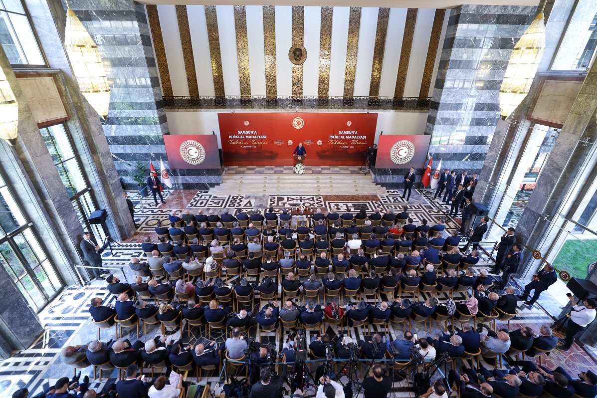 Konuşmaların ardından TBMM Başkanı Kurtulmuş ve Milli Savunma Bakanı Yaşar Güler tarafından Samsun Valisi Orhan Tavlı'ya, Samsun’un İstiklal Madalyası Beratı ile İstiklal Madalyası verildi.