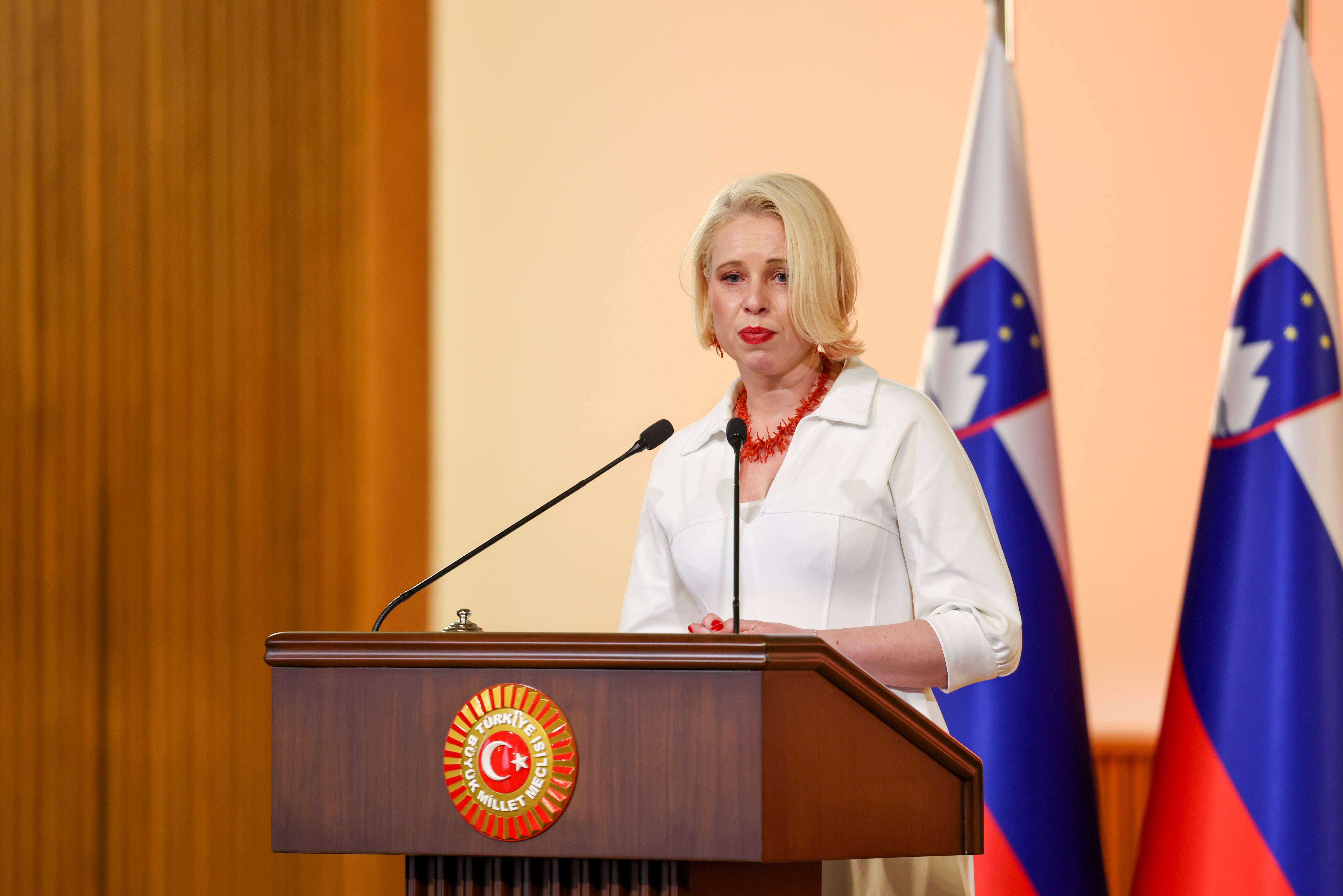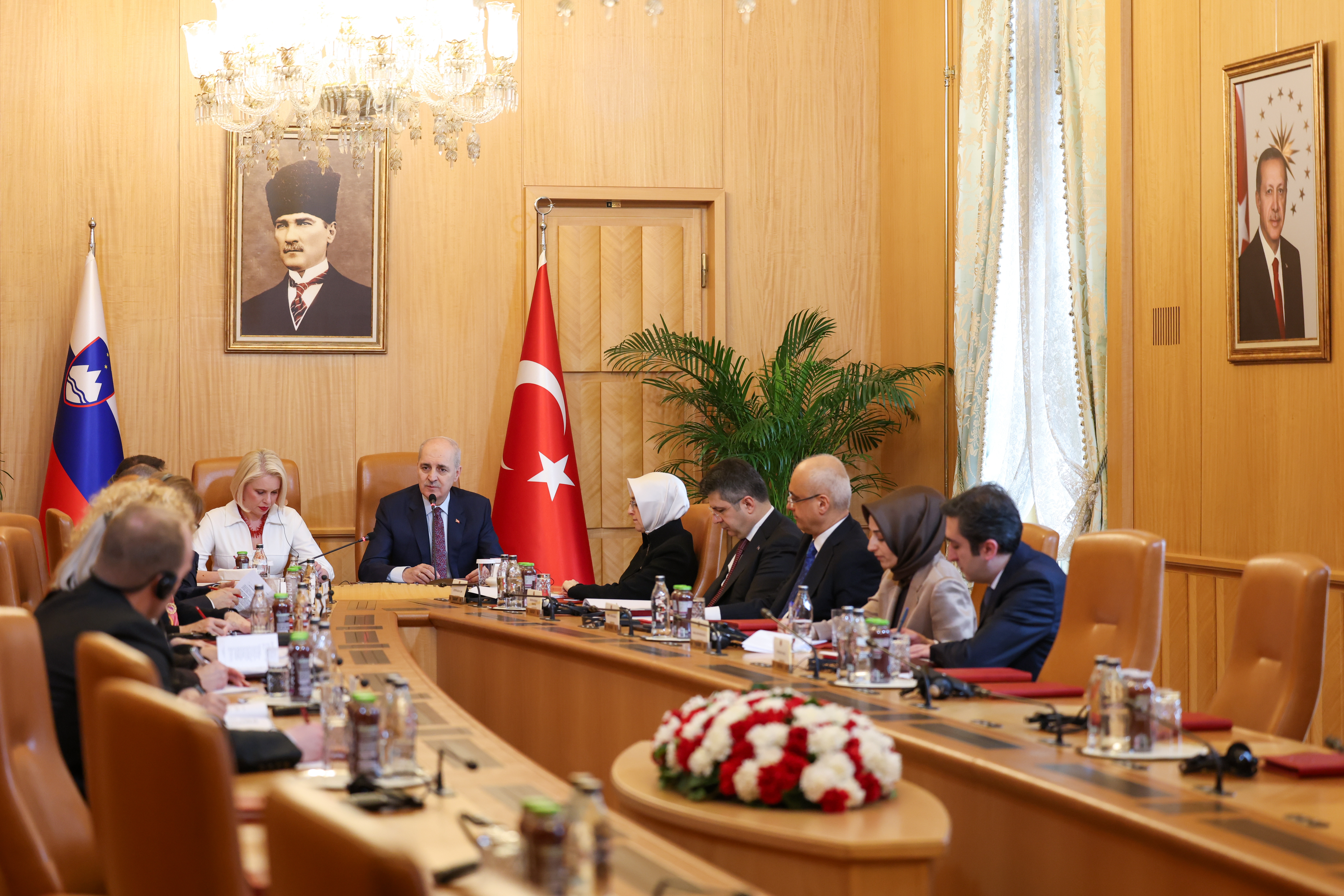 TBMM Başkanı Kurtulmuş, Türkiye’ye resmi ziyaret gerçekleştiren Slovenya Ulusal Meclis Başkanı Urška Klakocar Zupancic ile Meclis’te bir araya geldi.