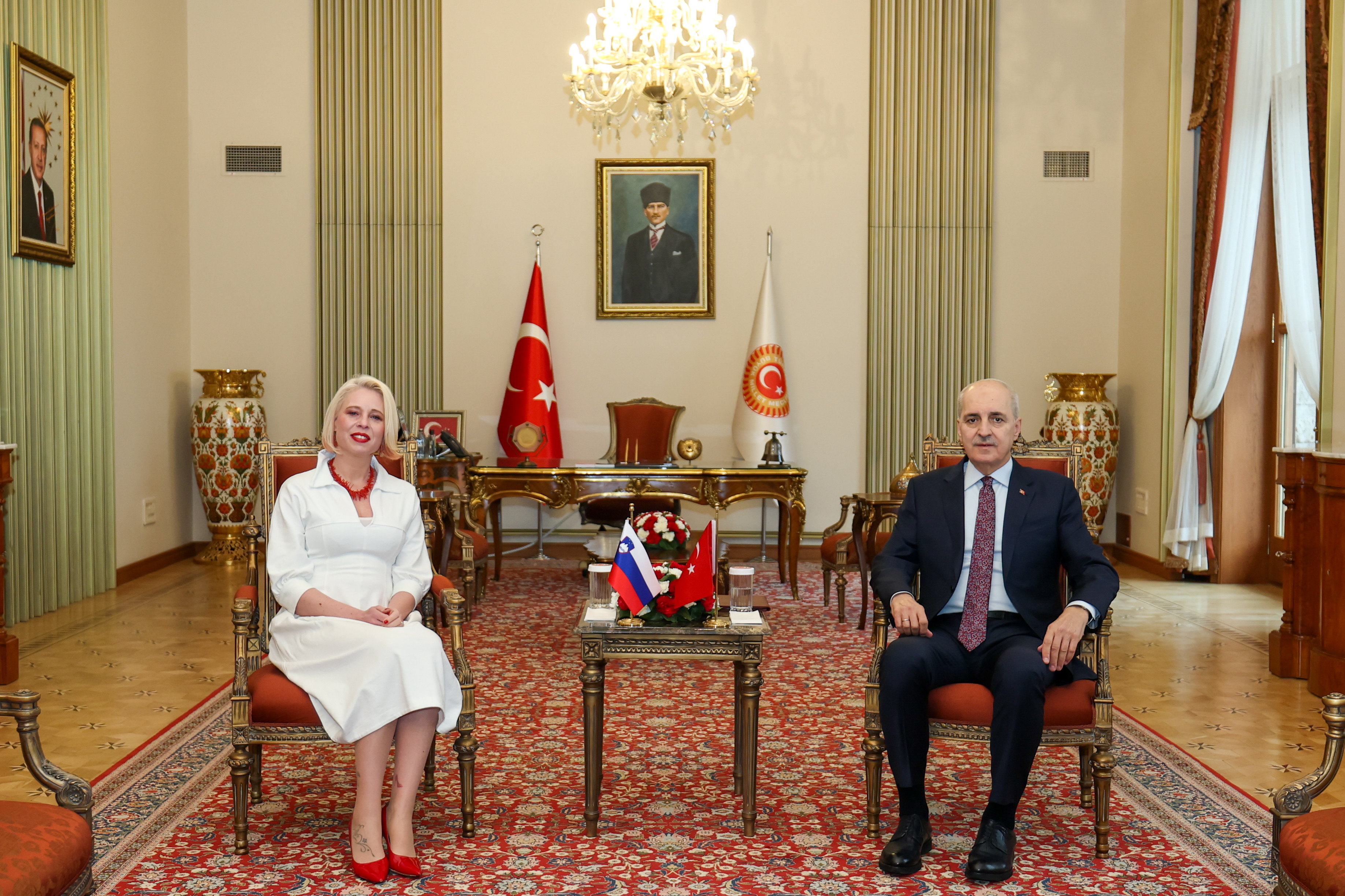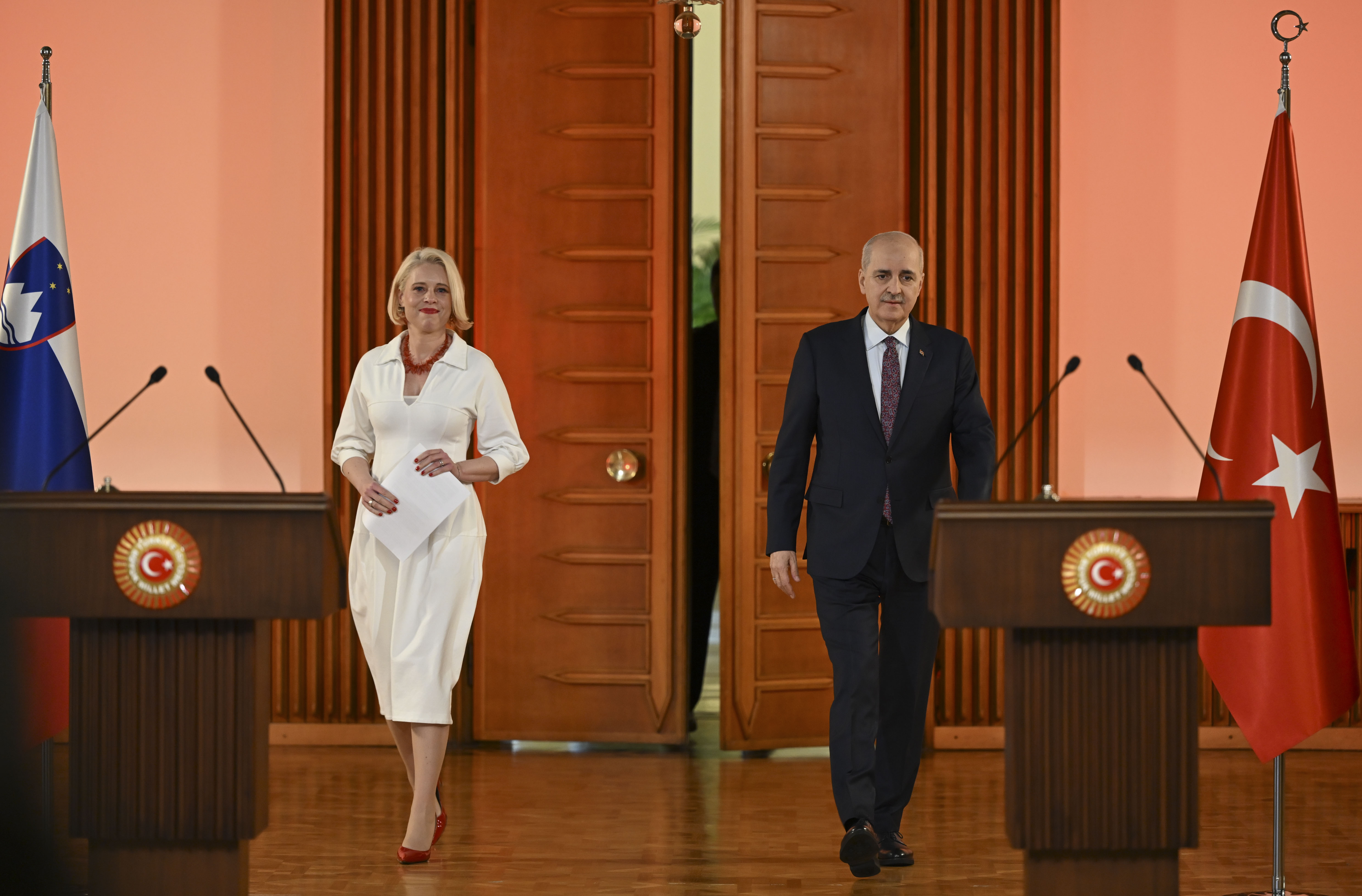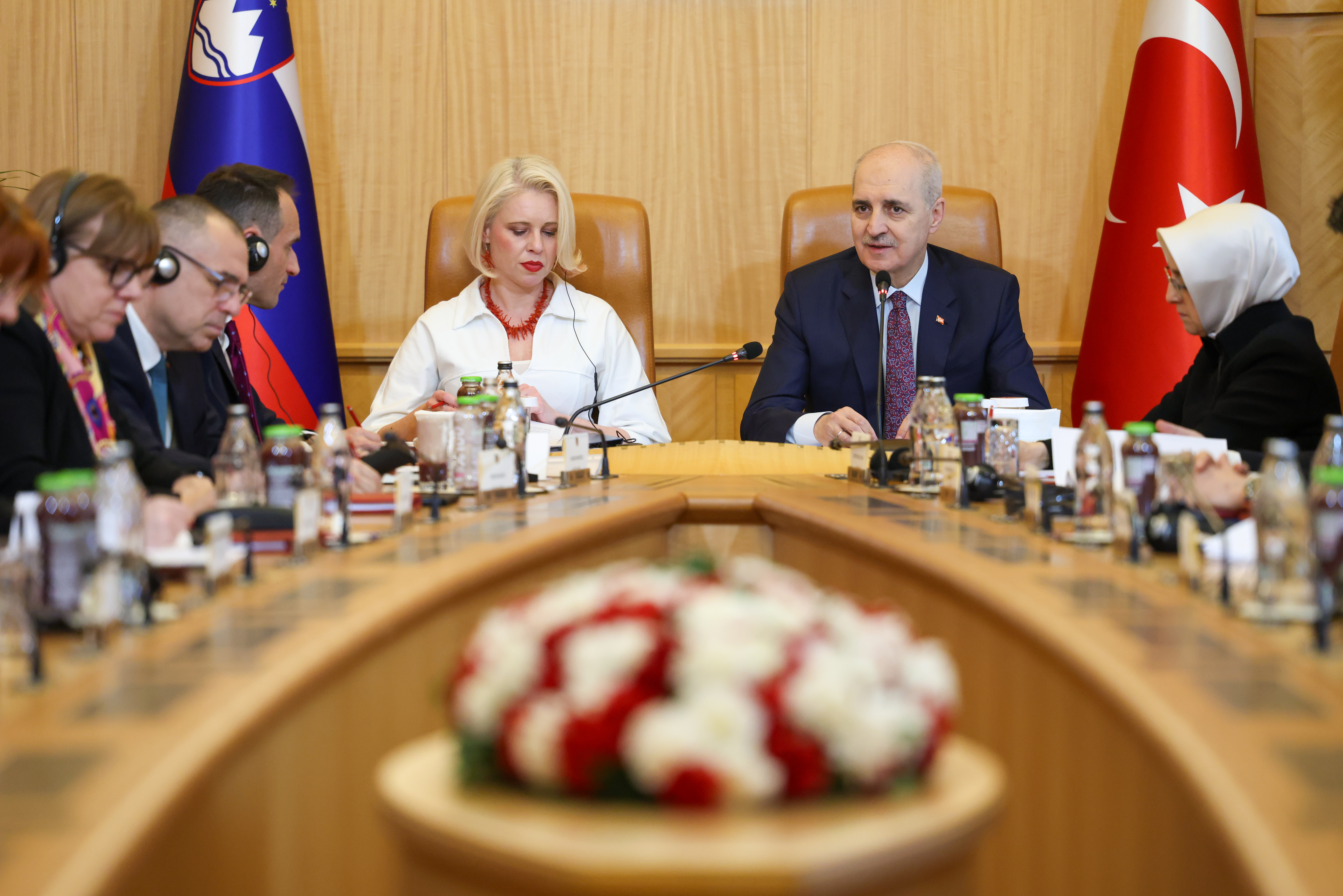 Zupancic’i TBMM’ye gelişinde karşılamasının ardından Slovenya ve Türkiye bayrakları önünde görüntü veren Kurtulmuş, daha sonra konuk mevkidaşı Zupancic ile baş başa görüşme gerçekleştirdi, heyetler arası toplantıya başkanlık yaptı.