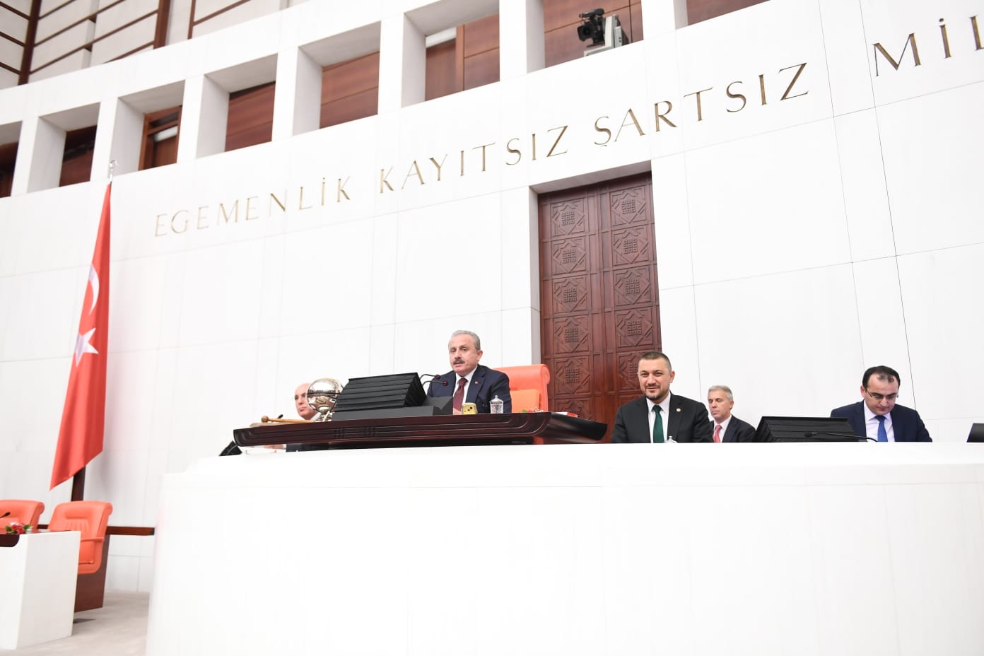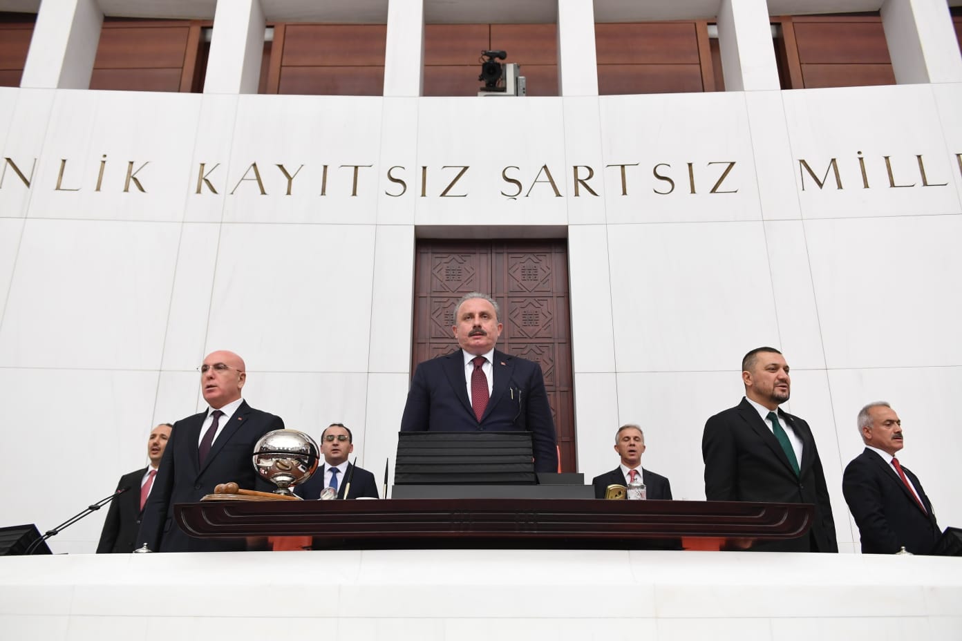 Elbette böylesi anlamlı bir yıl dönümünde bu çatı altında olmanın ayrı bir manası var. Bu durum bazı sorumlulukları da hepimize yüklemektedir. Her ne kadar kimi zaman sert ve bazen de haksız eleştirilere maruz kalsalar da milletvekillerimiz, yoğun bir tempoyla ve zor şartlar altında çalışmaktadır. Bu çalışma temposunun daha da artacağına; daha uyumlu ve gayretli bir yasama yılı geçireceğimize, oturumların ve siyasetin 100. yılın manasına uygun olarak daha da verimli seyredeceğine kanaatim tamdır."