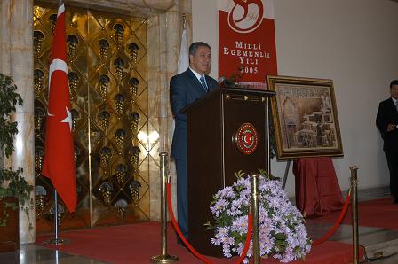 Arınç, Meclis'in şeref holünde, Ressam İsmet Yedikardeş'in, ''Mardin: Medeniyetler Kapısı'' adlı resim sergisinin açılışını yaptı.