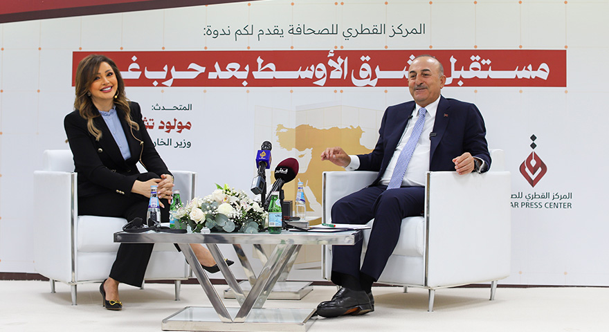 4. Katar Ekonomik Forumu'na katılmak için gittiği başkent Doha'daki Katar Basın Merkezinde düzenlenen "Gazze savaşı sonrası Ortadoğu’nun Geleceği" başlıklı seminerde konuşan Çavuşoğlu, yerel, ulusal ve uluslararası basından gazetecilerin sorularını yanıtladı.