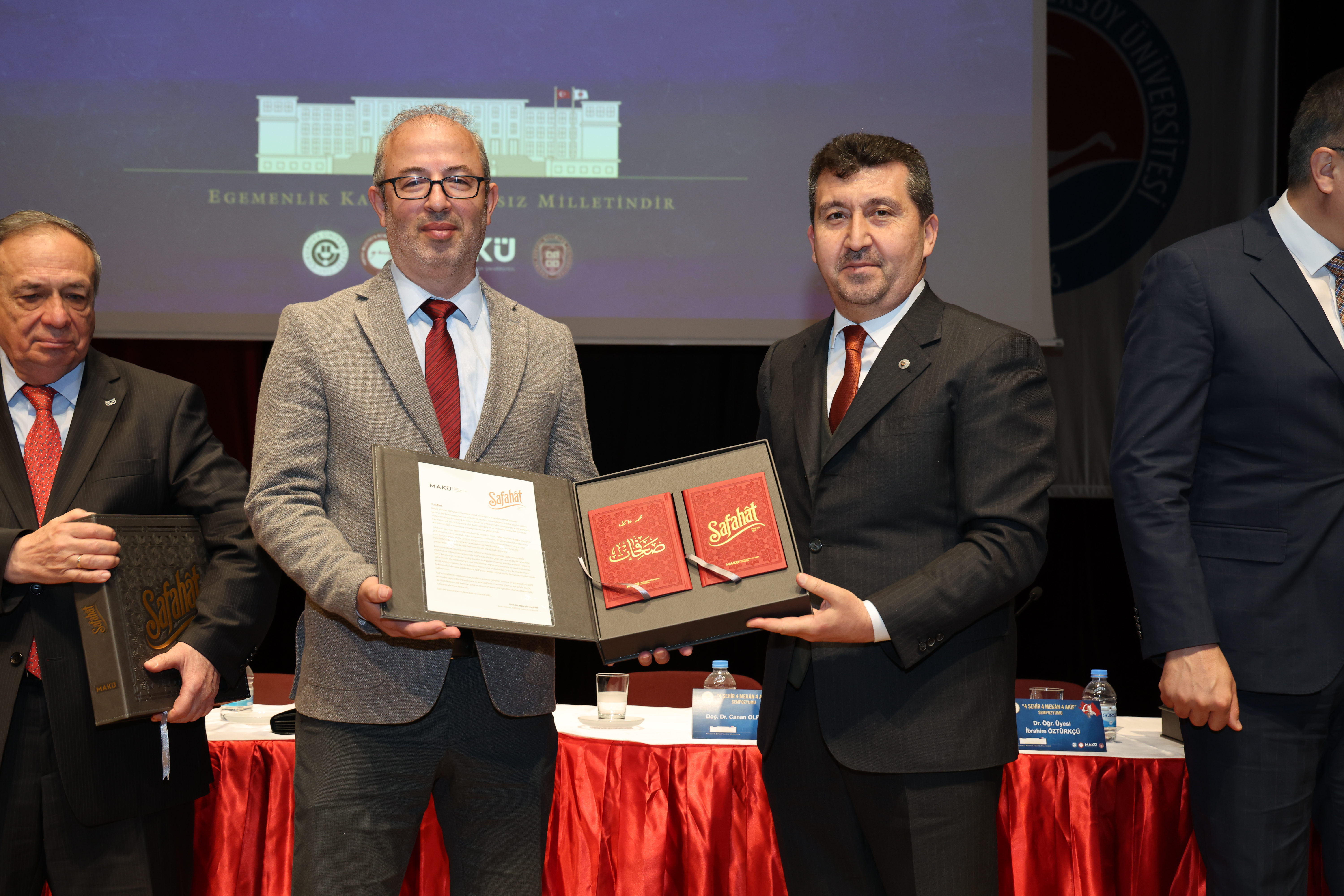 Program sonunda panelistlere, Burdur Mehmet Akif Ersoy Üniversitesi tarafından yayımlanan Osmanlıca ve Türkçe tıpkıbasım Safahat eseri hediye edildi.