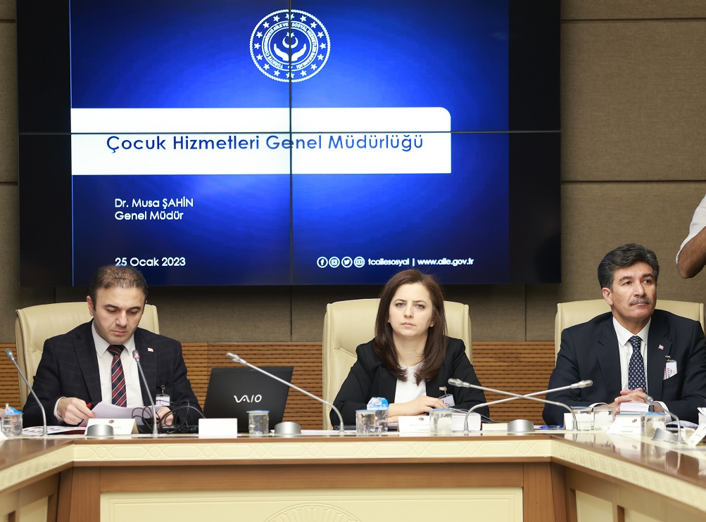 Toplantıda, Aile ve Sosyal Hizmetleri Bakanlığı Çocuk Hizmetleri Genel Müdürü Musa Şahin ve Kadının Statüsü Genel Müdürü Gülser Ustaoğlu ile Adalet Bakanlığı Adli Destek ve Mağdur Hizmetleri Daire Başkanı Meral Gökkaya sunum yaptı.