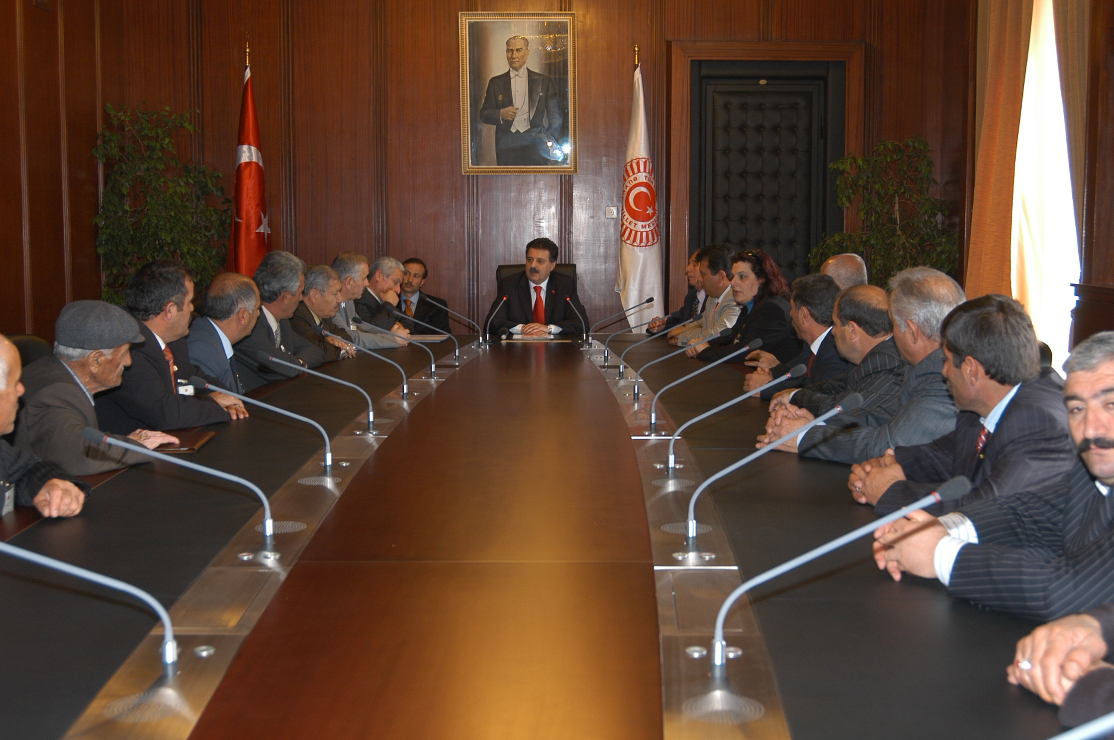 TBMM Başkanvekili Nevzat Pakdil, Erzurum, Kars, Ağrı ve Ardahan'dan gelen köy ve mahalle muhtarlarını TBMM'de kabul ederek, sorunlarını dinledi.