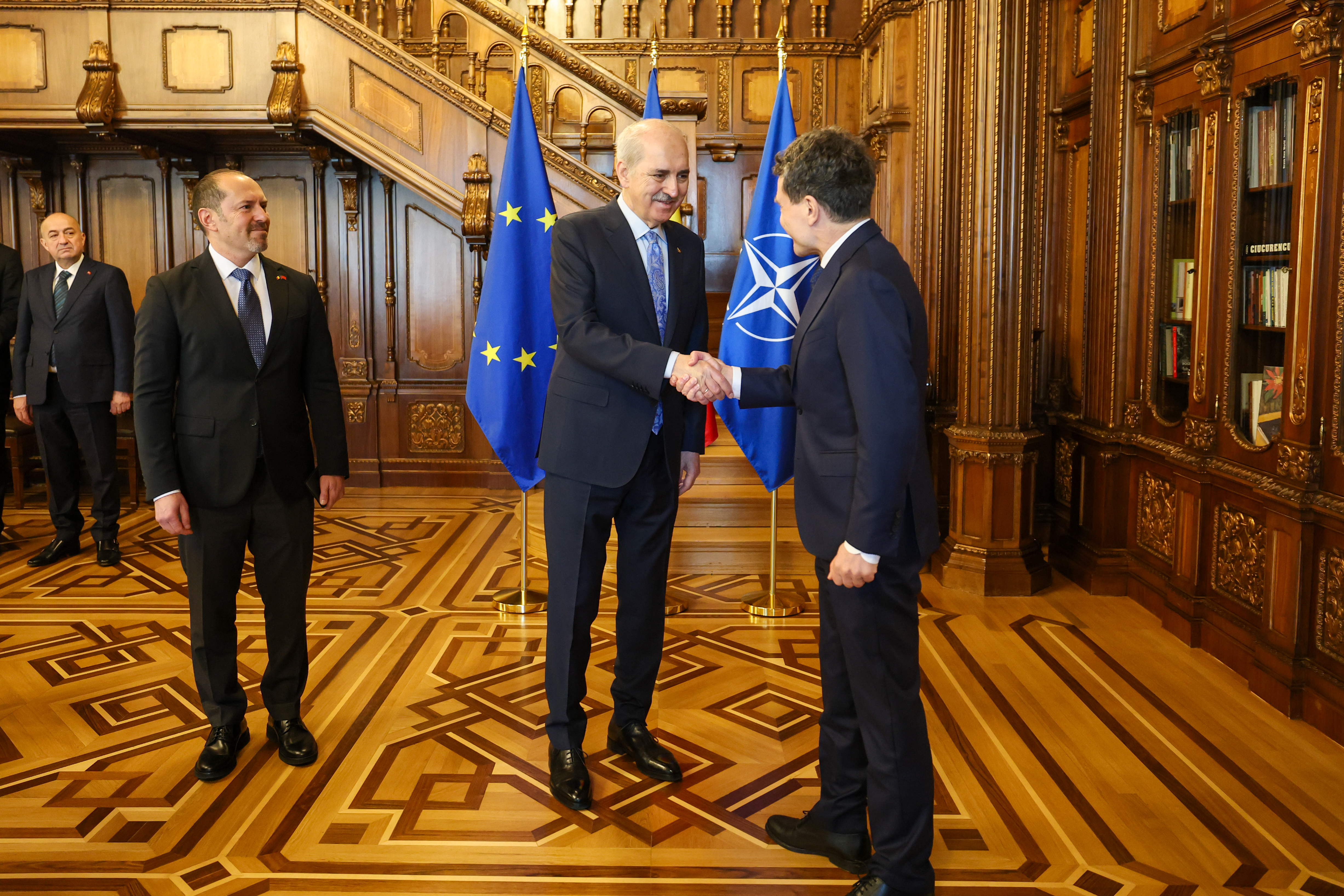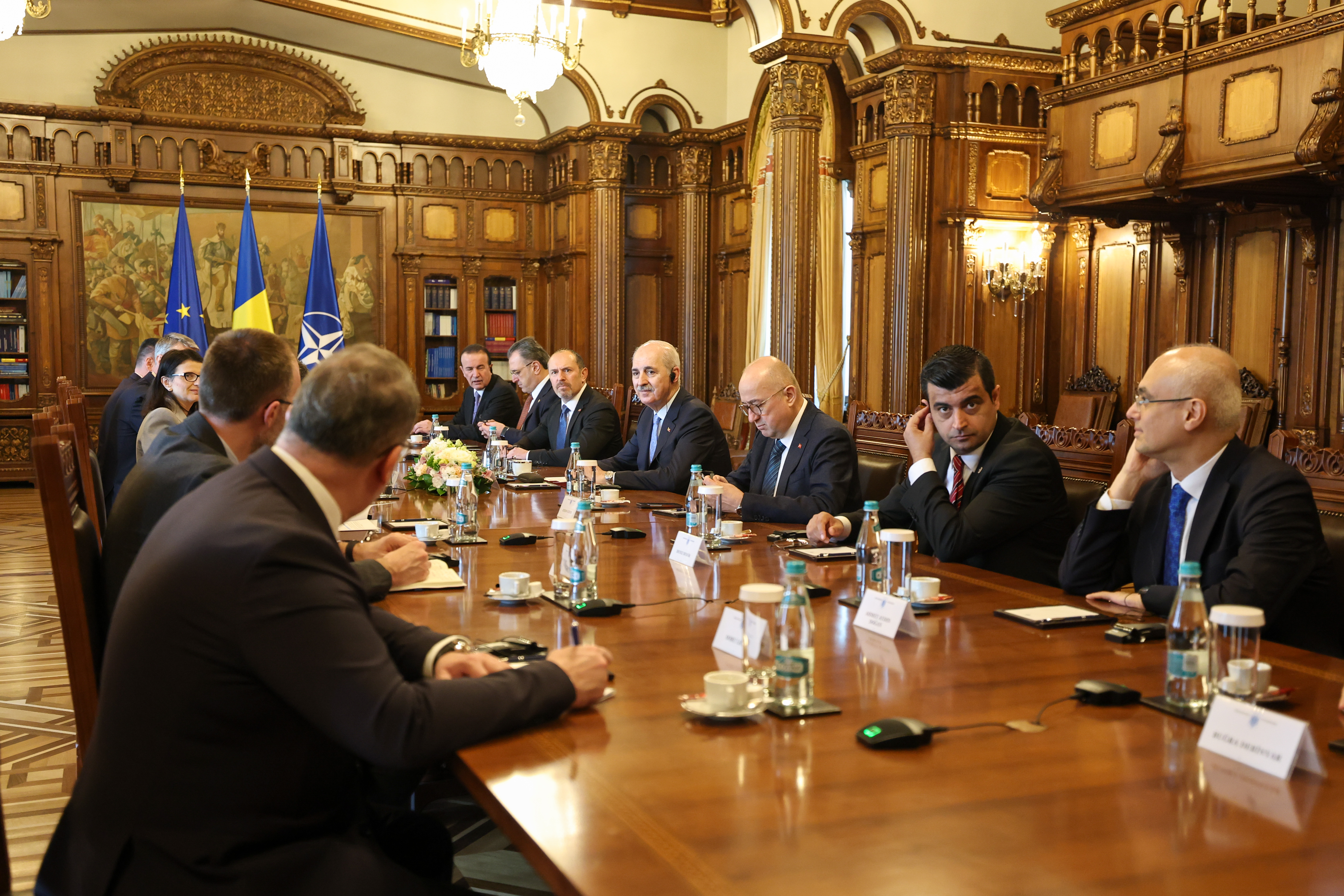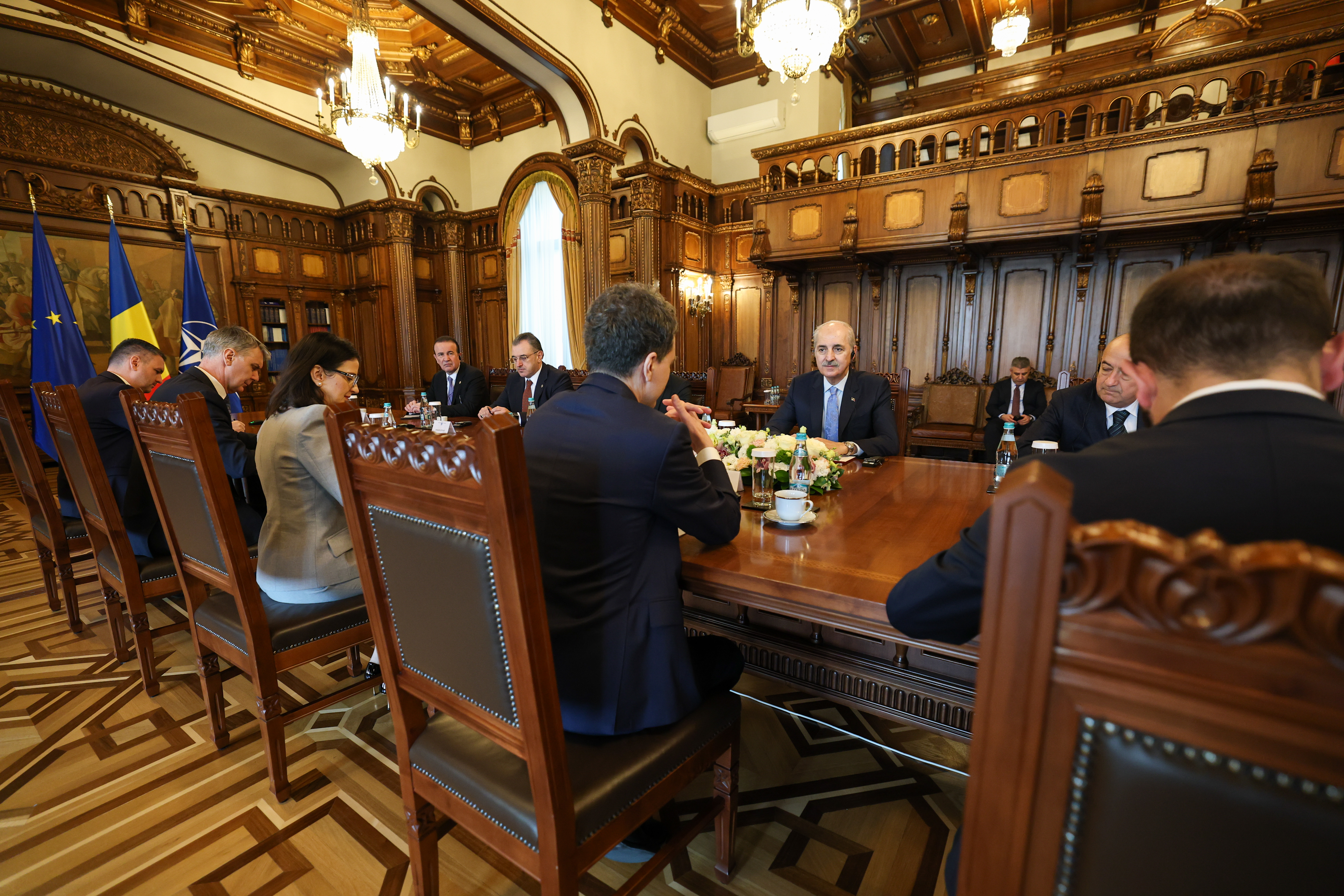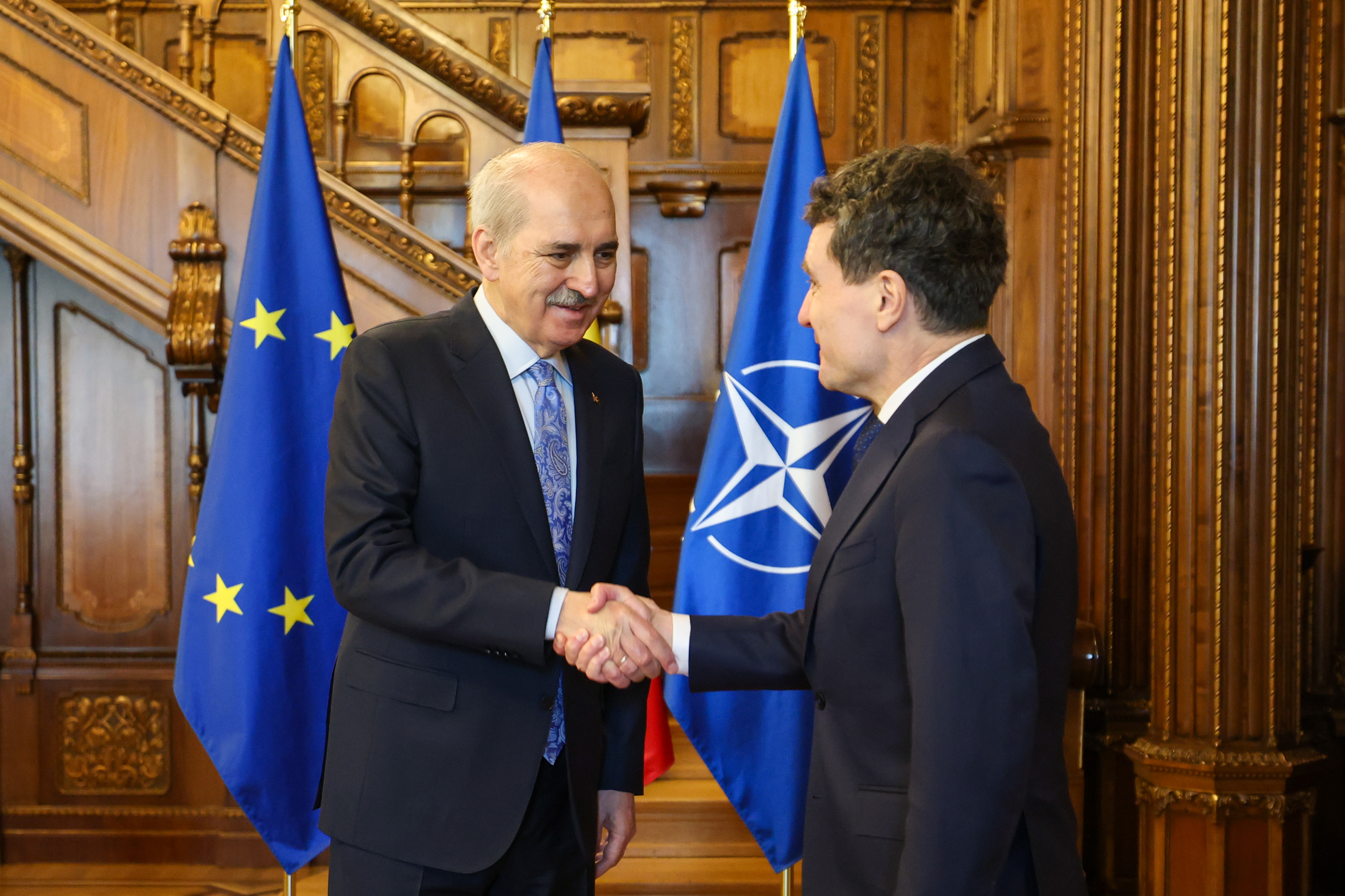 TBMM Başkanı Numan Kurtulmuş, resmi ziyaret gerçekleştirdiği Bükreş’te Romanya Cumhurbaşkanı Nicuşor Dan tarafından kabul edildi.